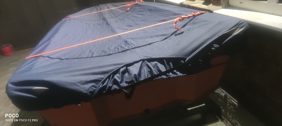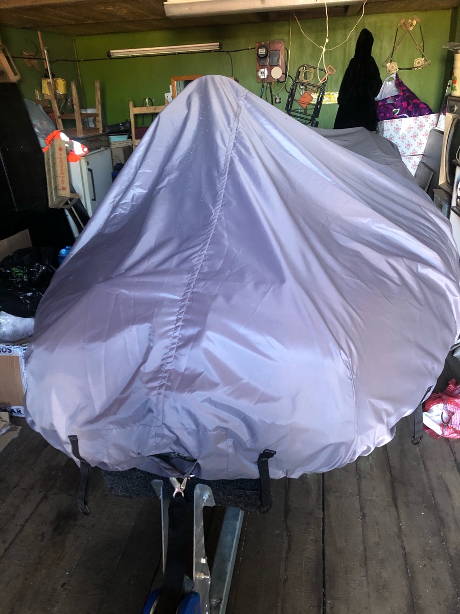 Тент на катер Тактика 390 РМ СЕРЫЙ (Транспортировочный стояночный)прямой без консоли и стекла.