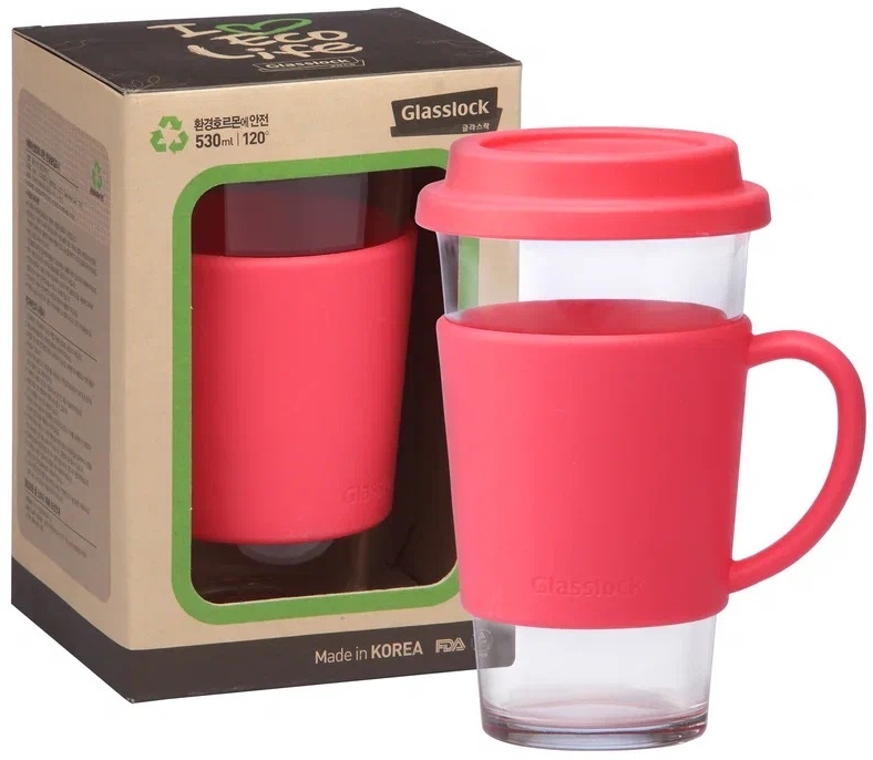 Стакан Glasslock RC-106 (530ml, ручка, малиновый силикон)