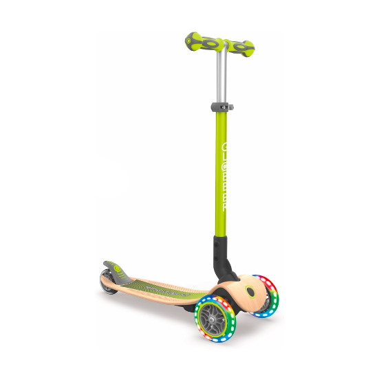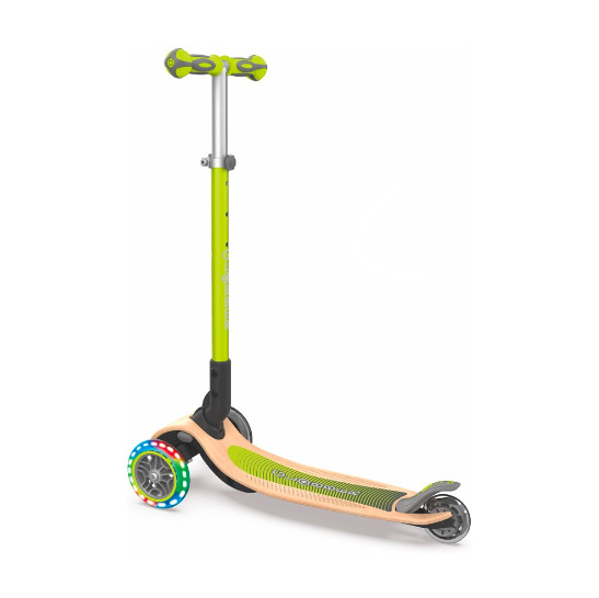 Самокат детский трехколесный складной "GLOBBER" PRIMO FOLDABLE WOOD LIGHTS зеленый