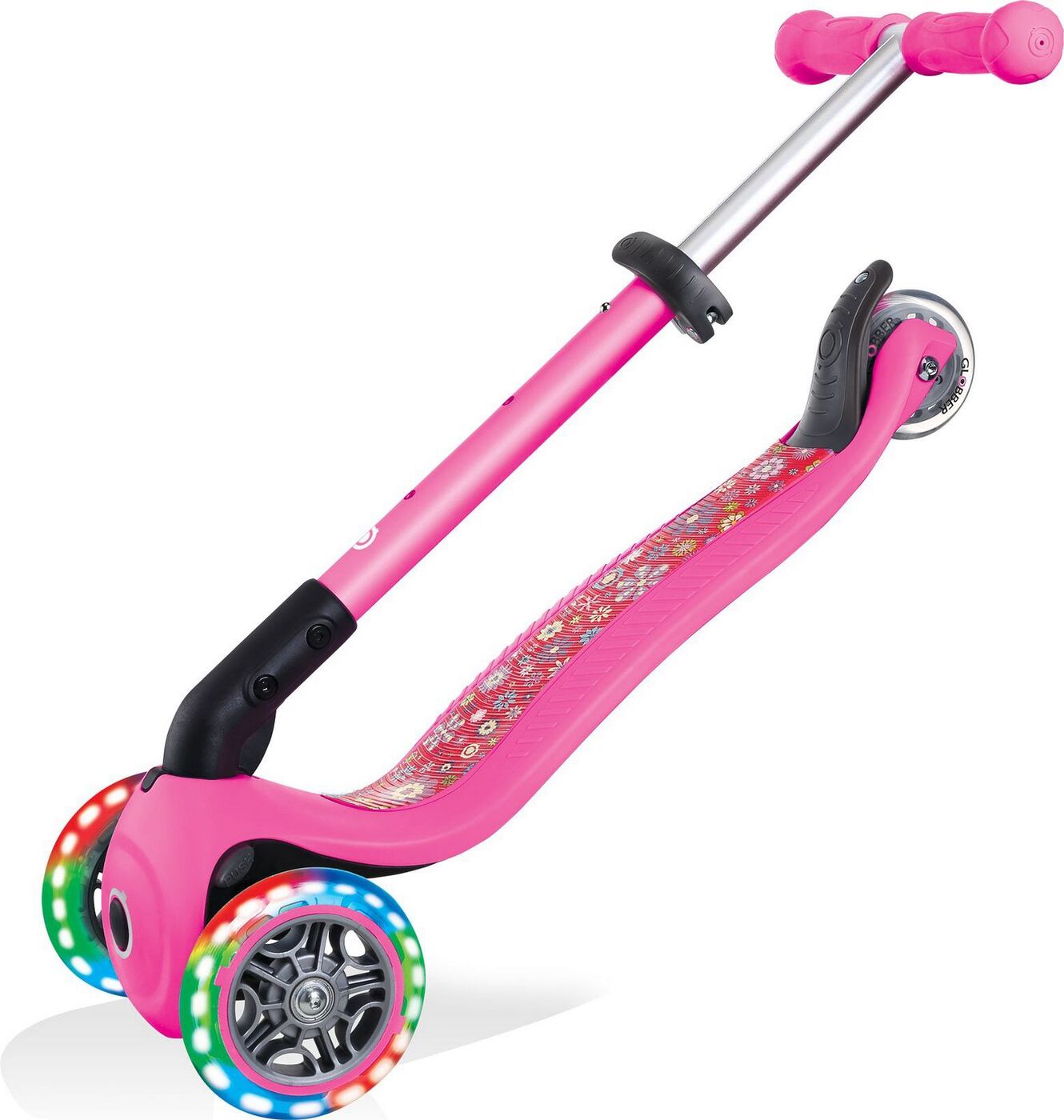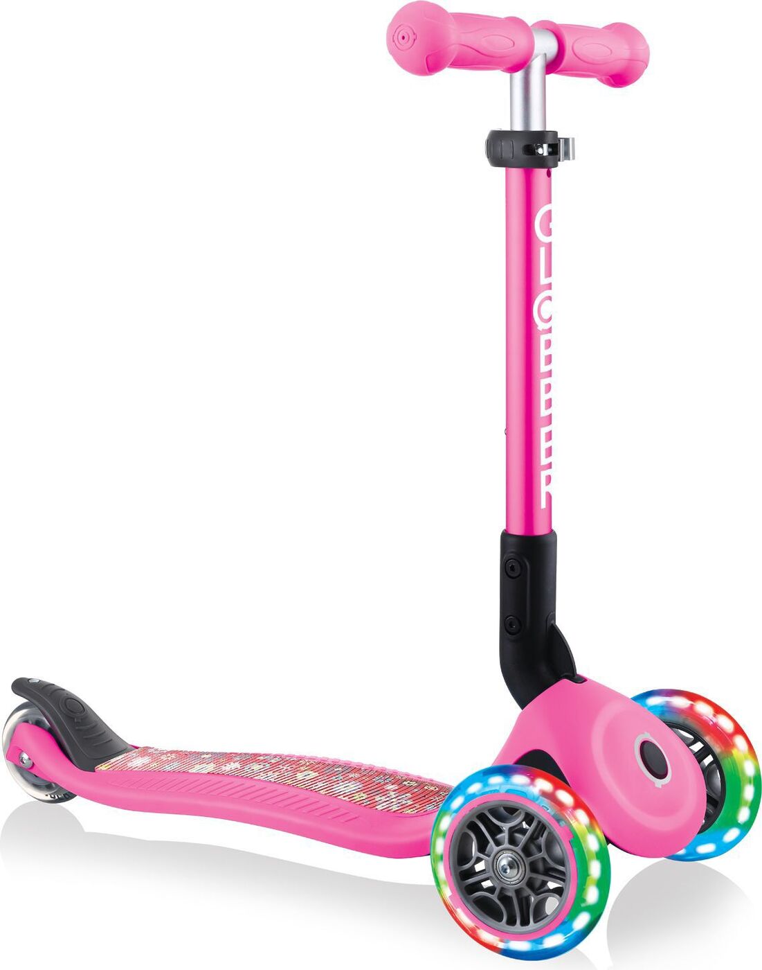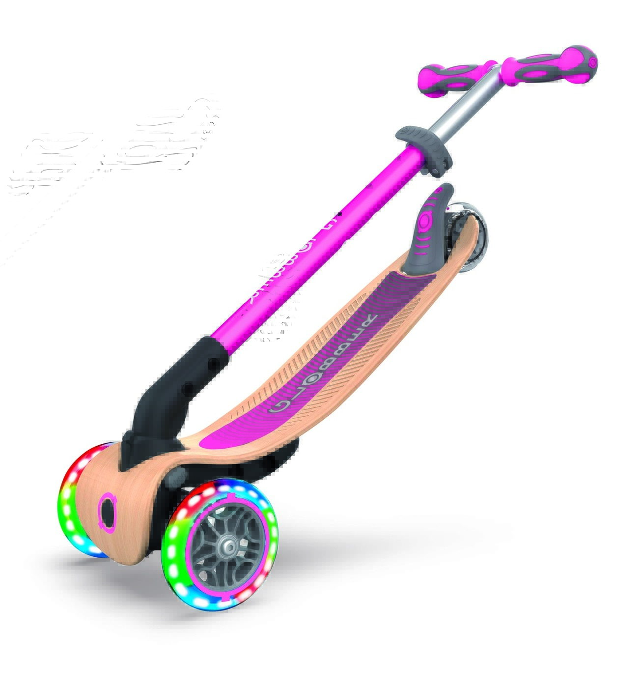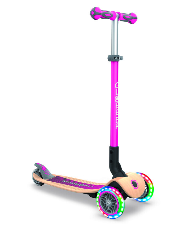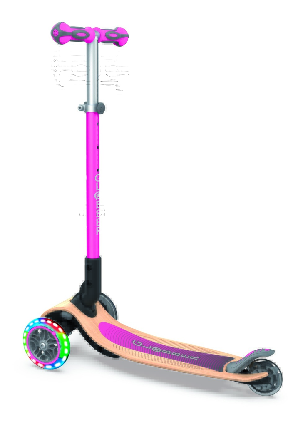 Самокат детский трехколесный складной "GLOBBER" PRIMO FOLDABLE WOOD LIGHTS розовый