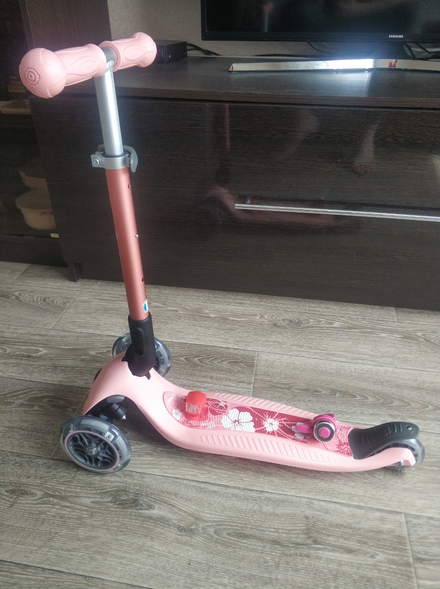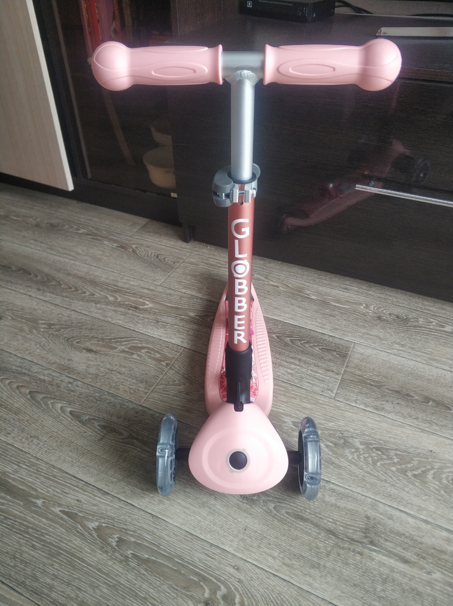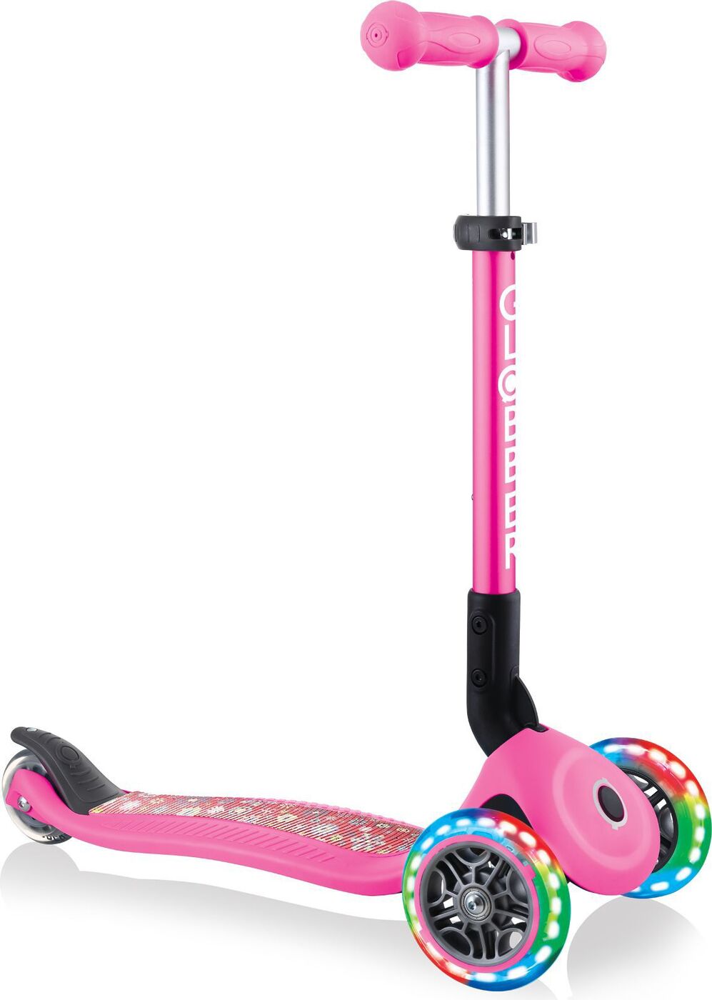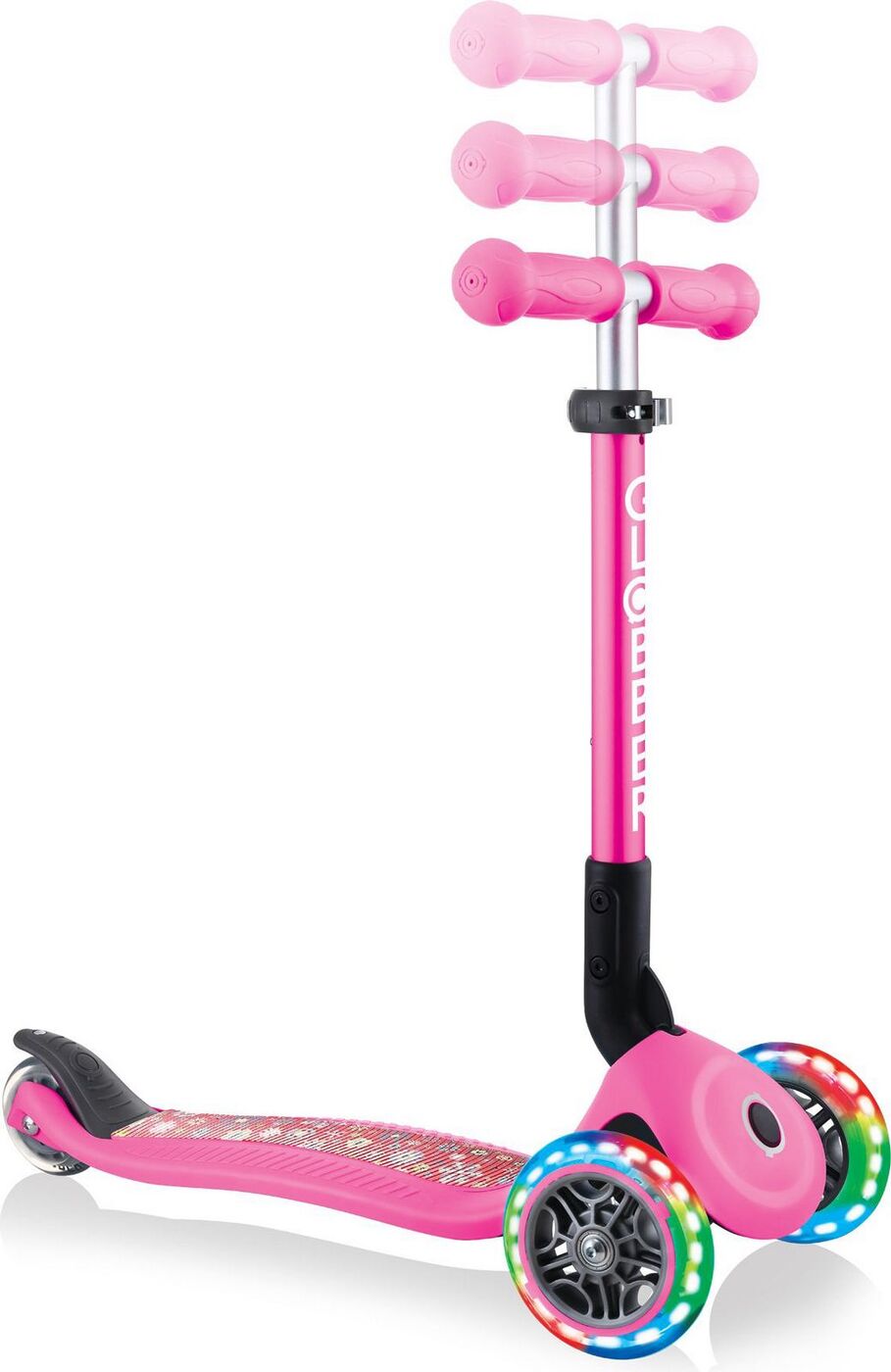 Самокат детский трехколесный складной "GLOBBER" PRIMO FOLDABLE WOOD LIGHTS розовый