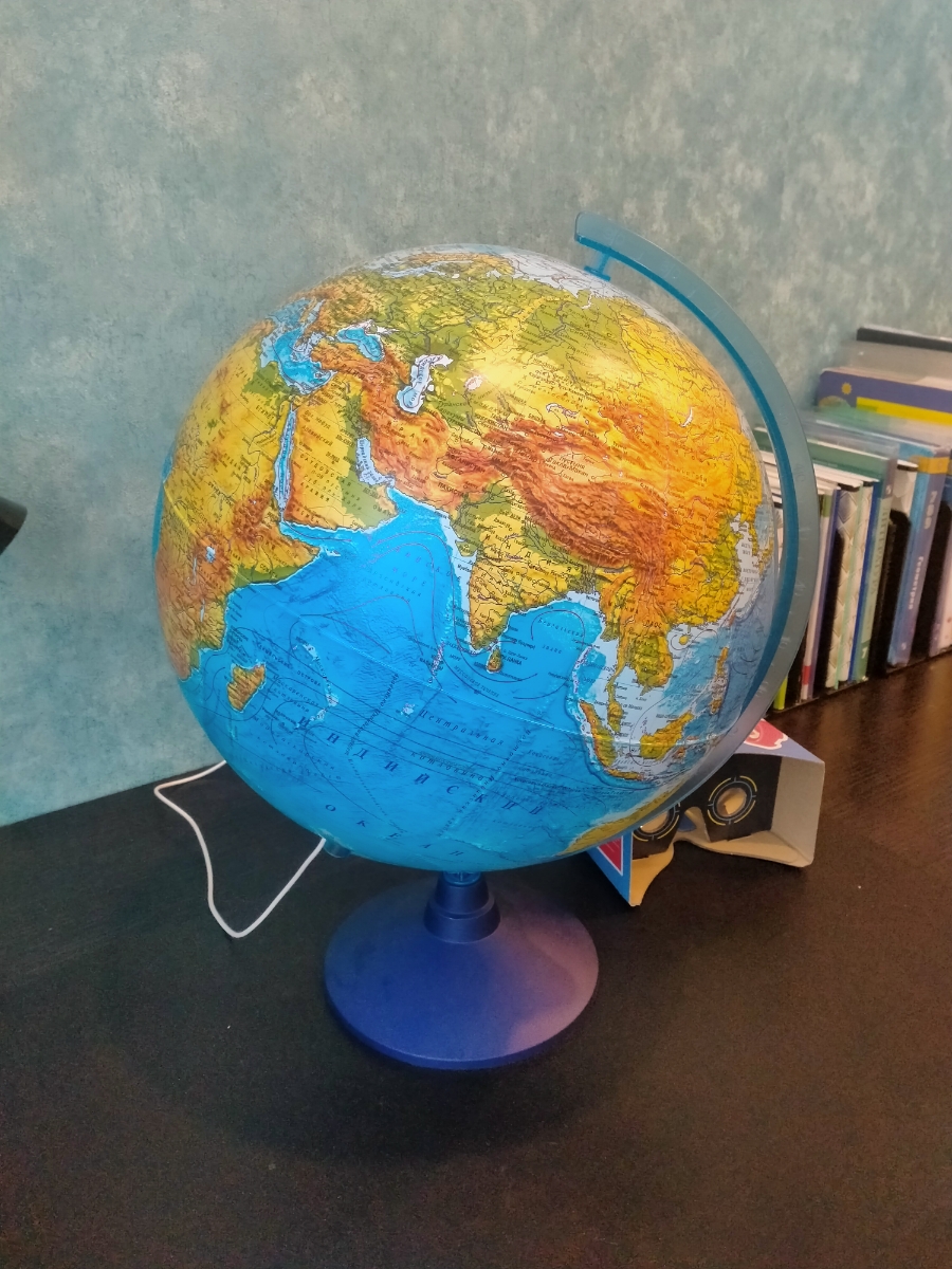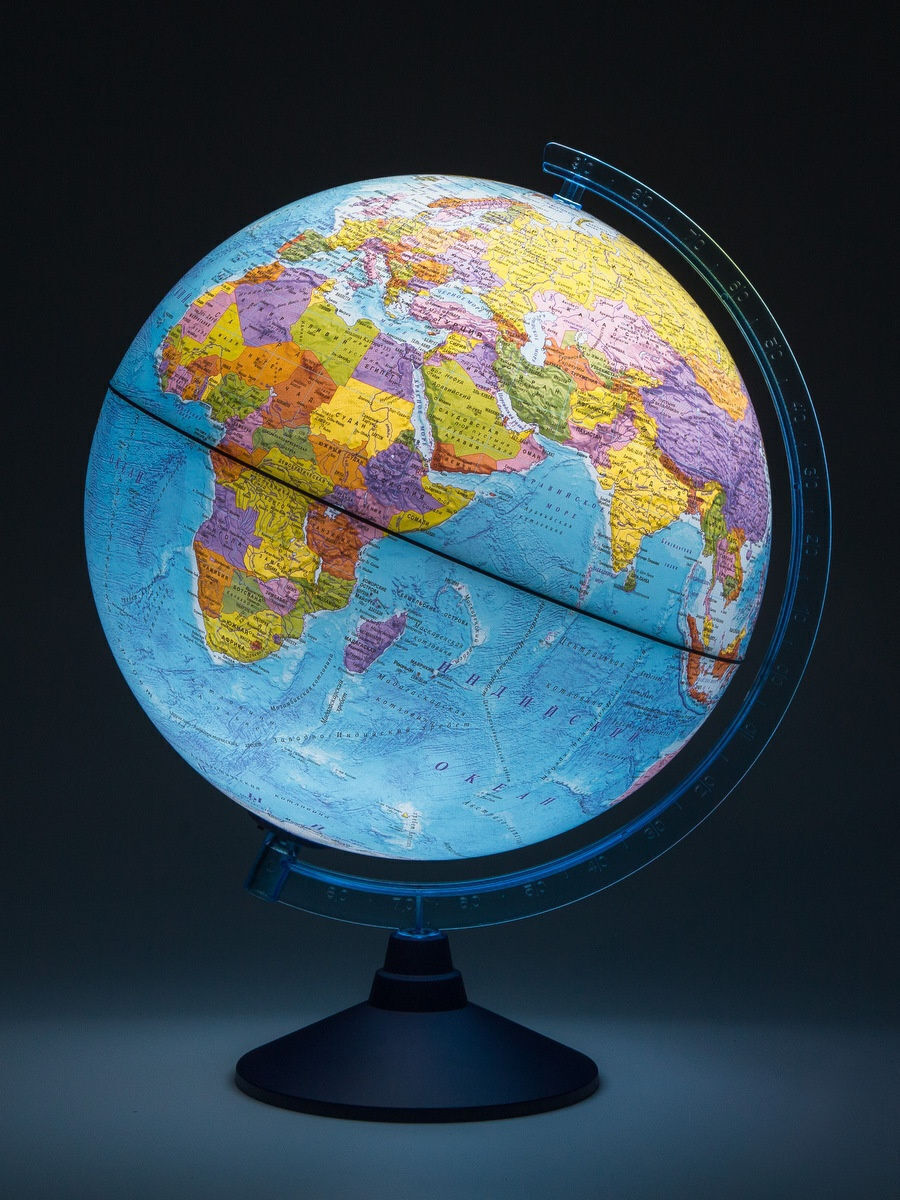 Globen Глобус Земли физико-политический рельефный, с LED-подсветкой, диаметр 25 см.