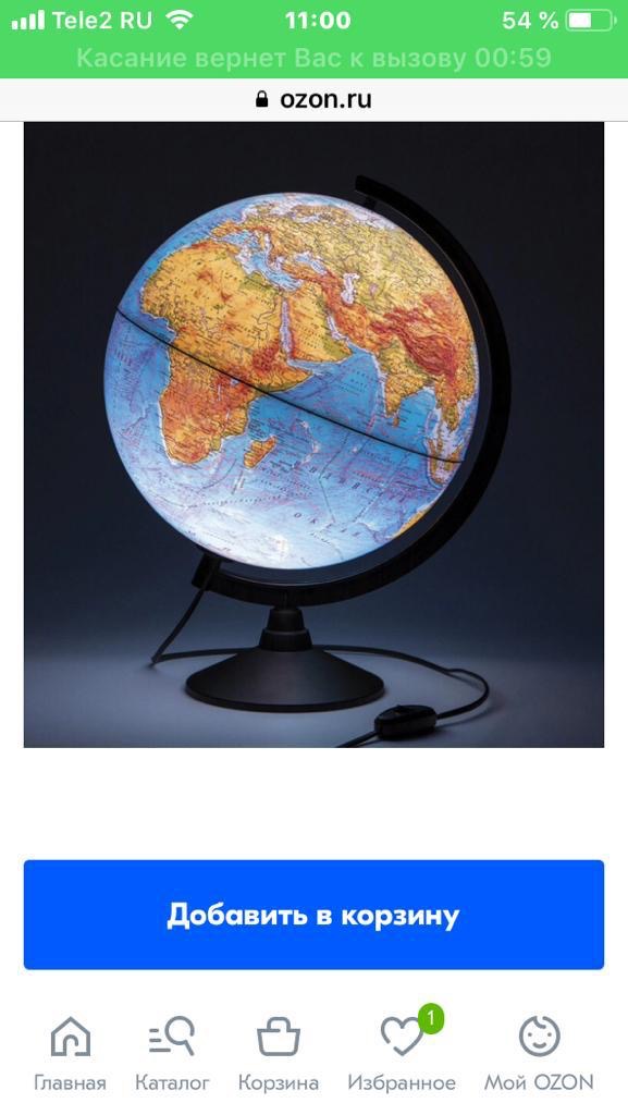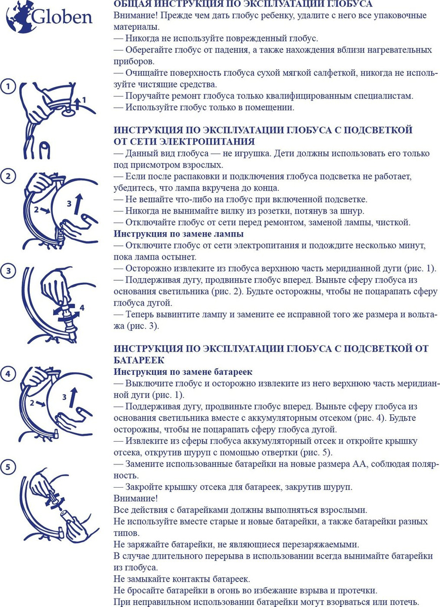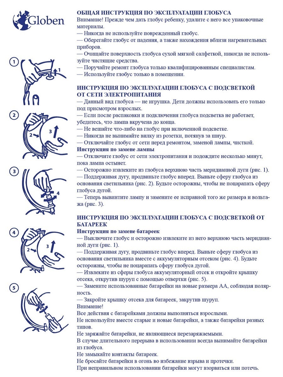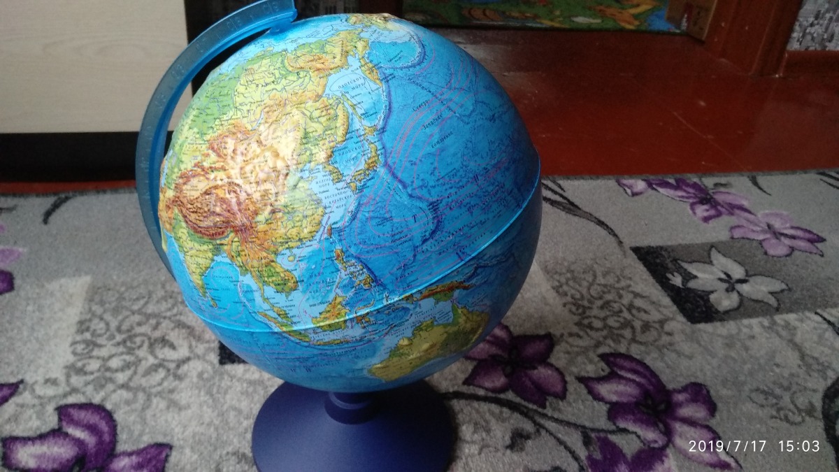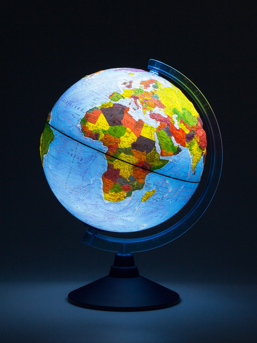 Глобус Земли Globen физико-политический, рельефный с подсветкой от батареек, диаметр 21 см.