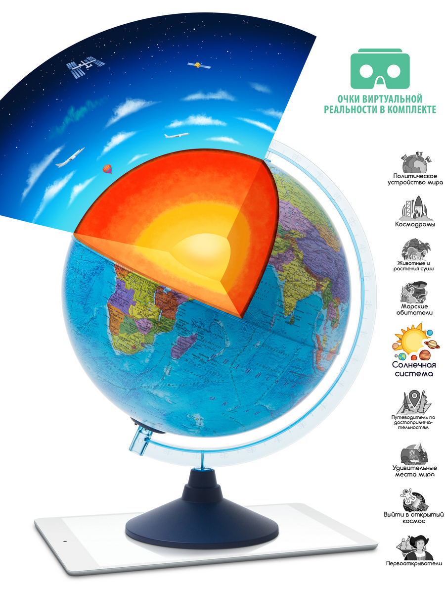 Глобус интерактивный физический/политический GLOBEN, диаметр 250 мм, с подсветкой, INT12500284