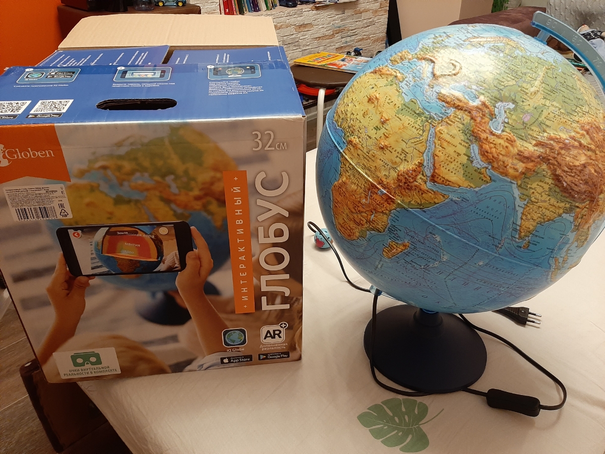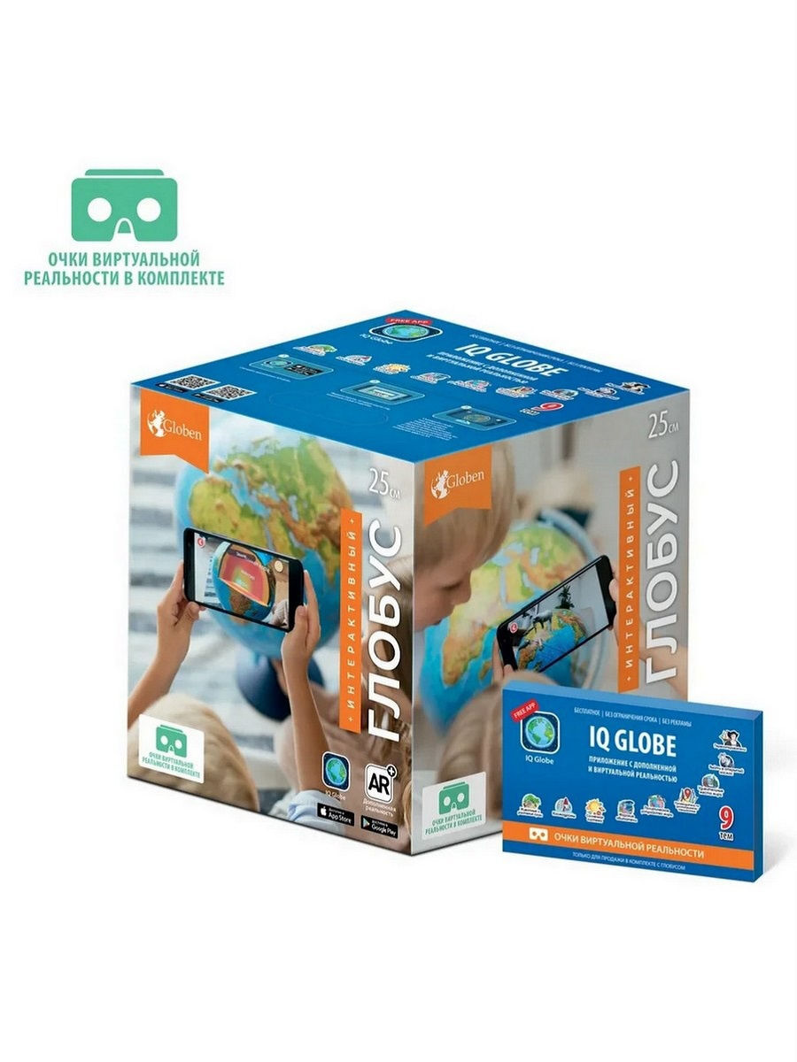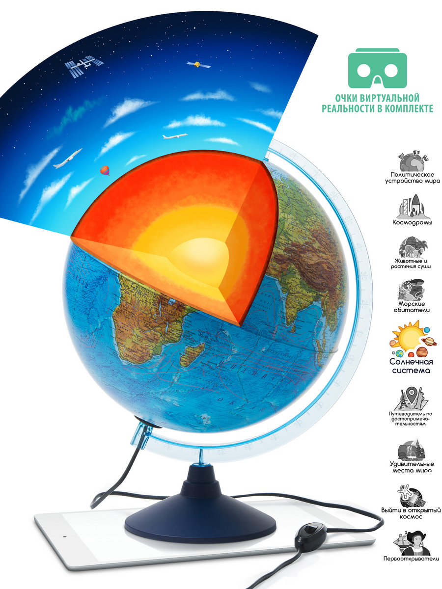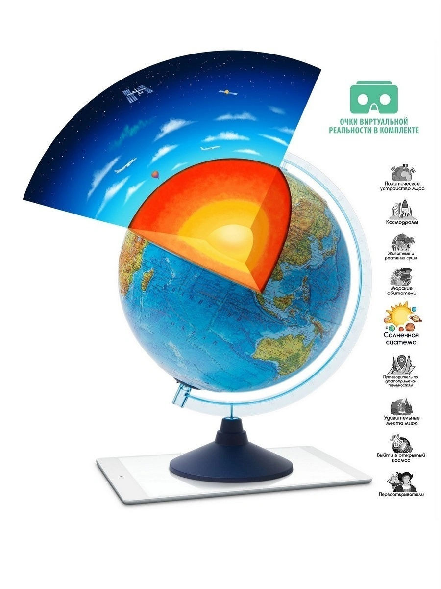 Globen Интерактивный глобус Земли физико-политический, 21 см., с LED-подсветкой + VR очки