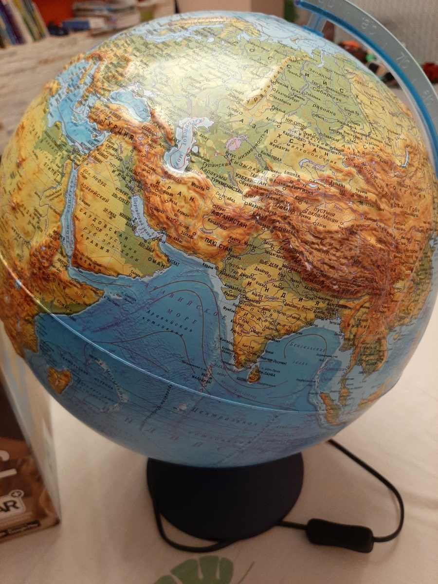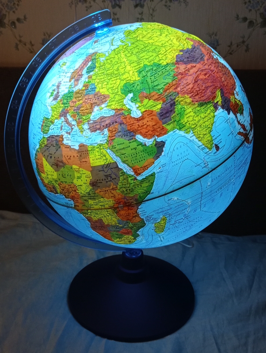 Глобус Земли Globen физико-политический, рельефный с подсветкой от батареек, 32 см.