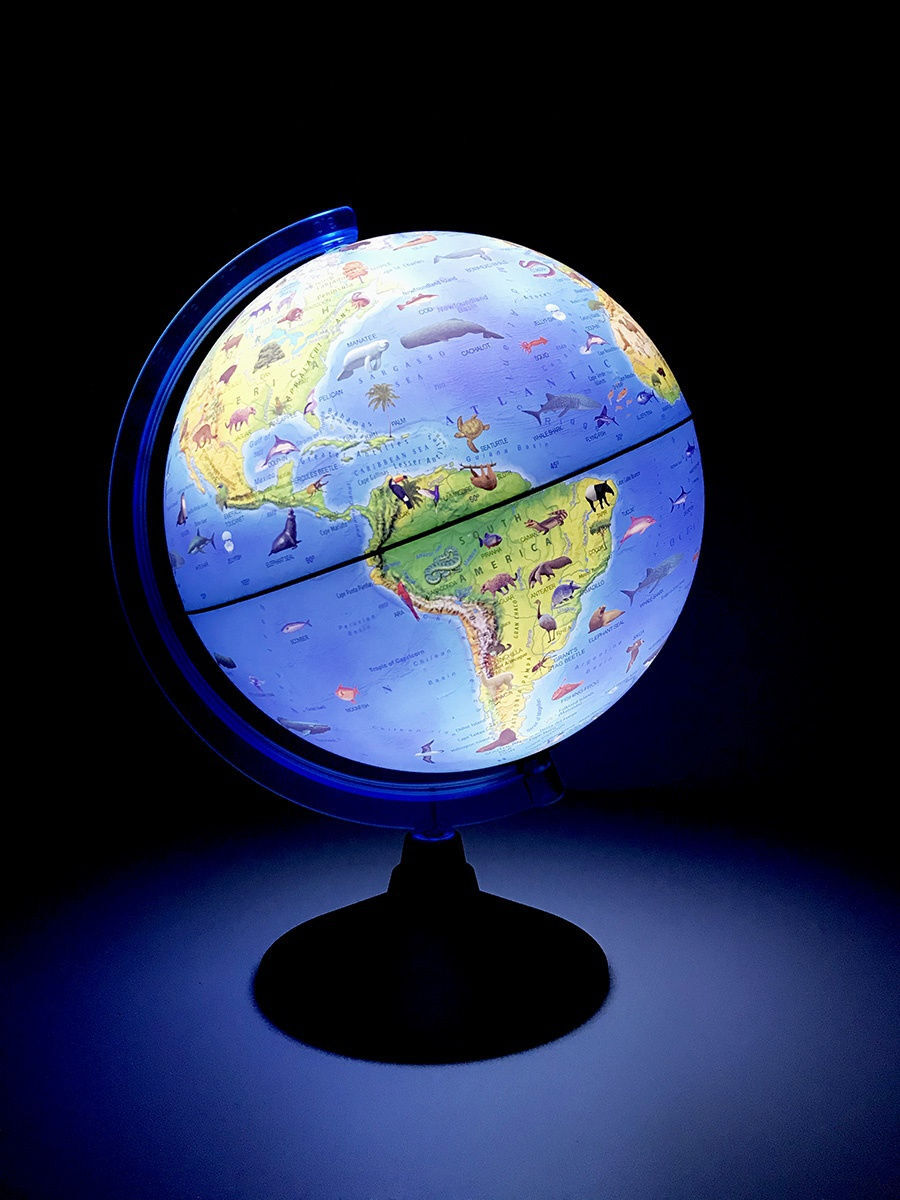 Globen / Глобус Зоогеографический на английском языке с подсветкой от батареек, 25 см