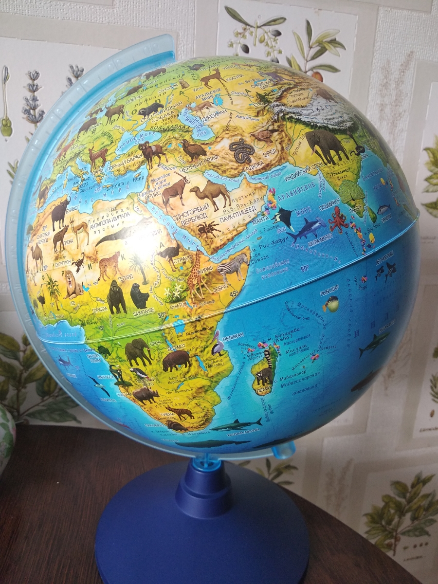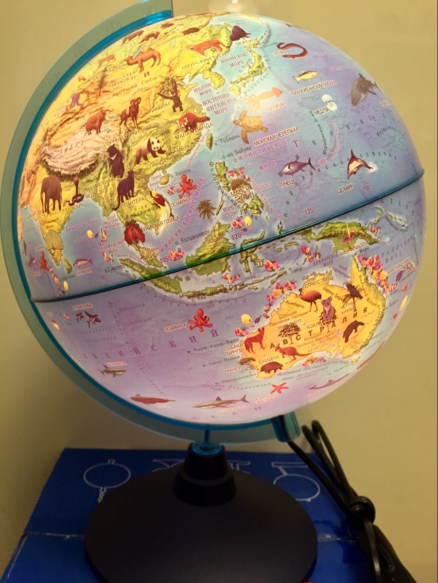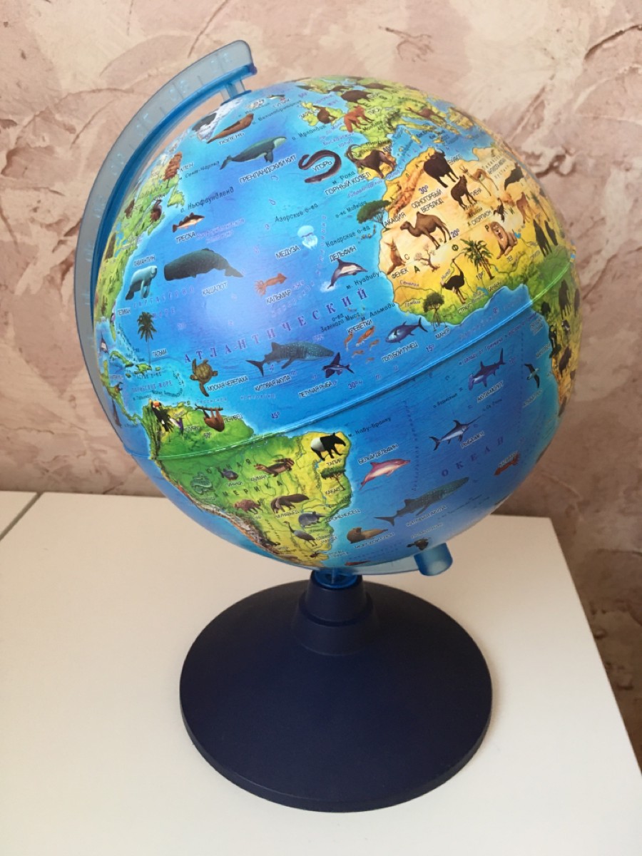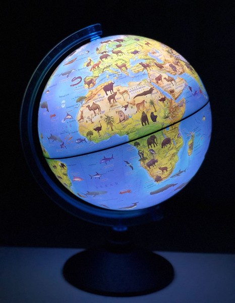 Глобус Globen Зоогеографический (детский) с подсветкой от батареек, диаметр 21 см