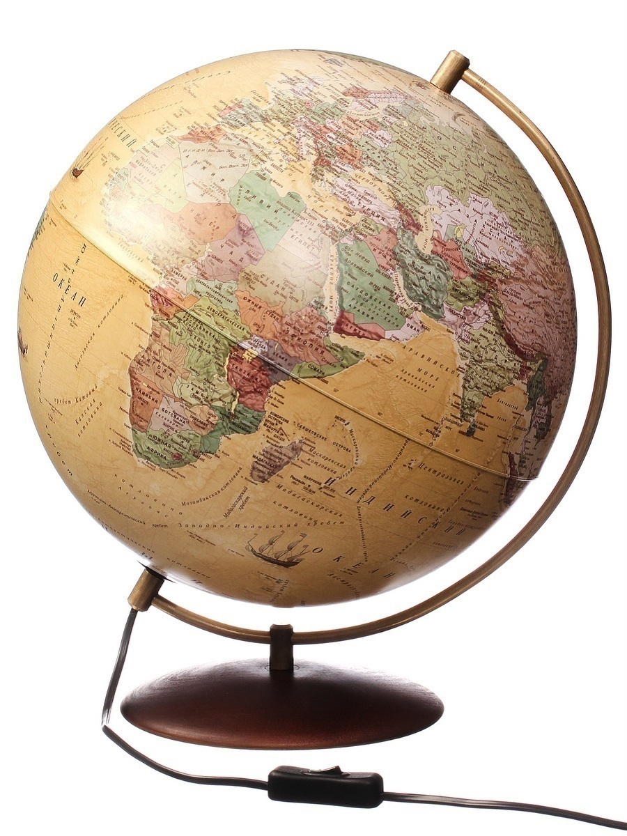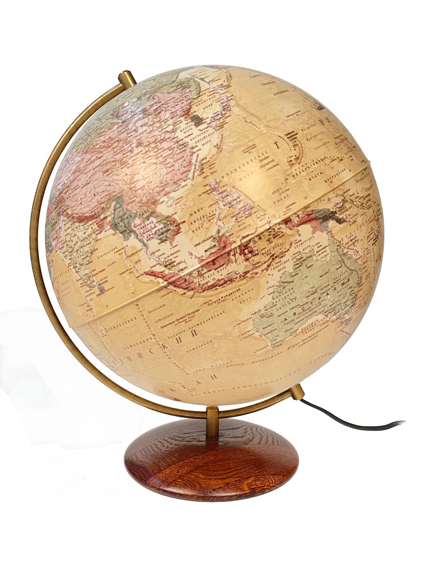 Globen Глобус Земли Антик, на подставке из натурального дерева, с LED-подсветкой, диаметр 32 см.