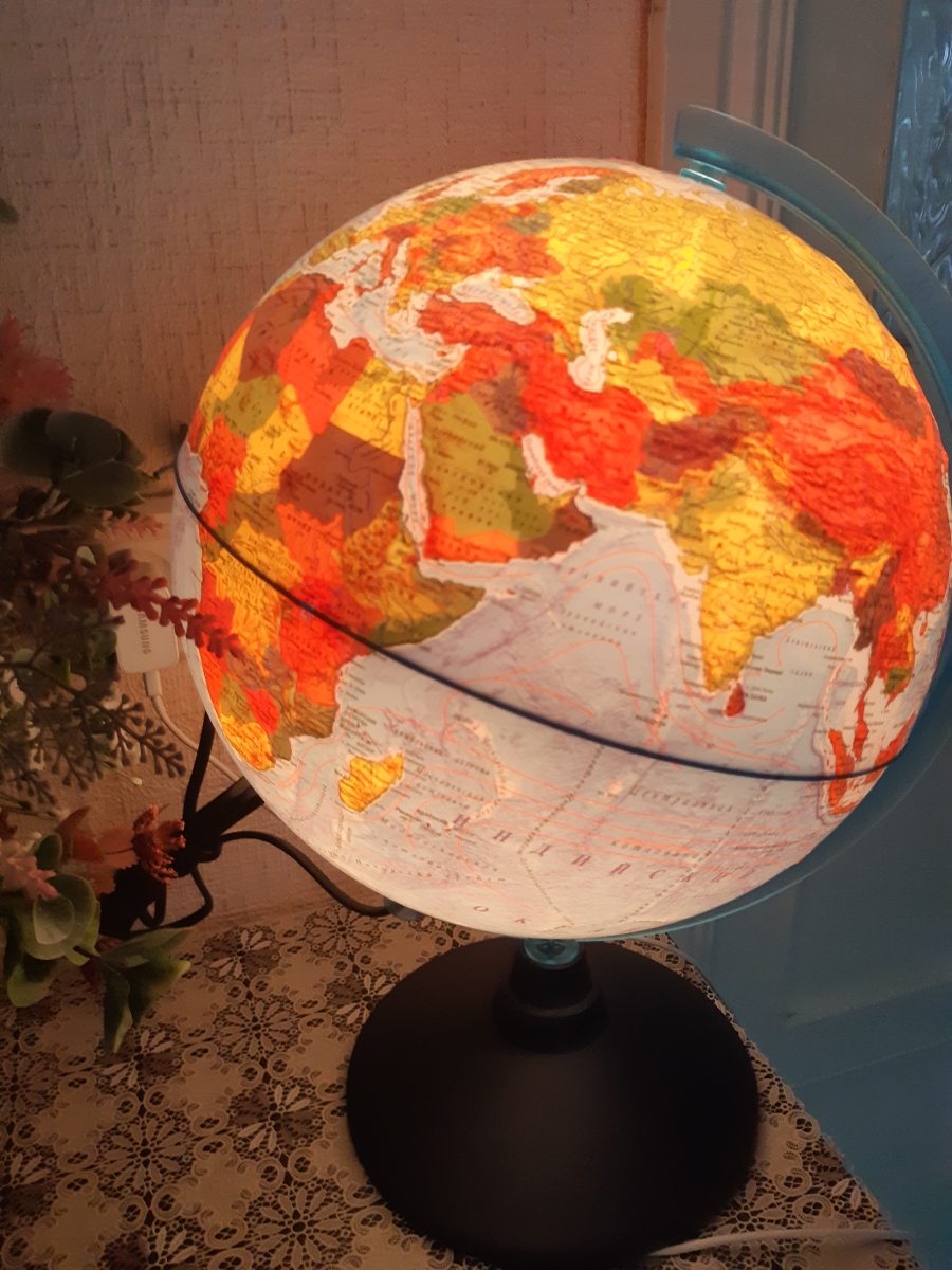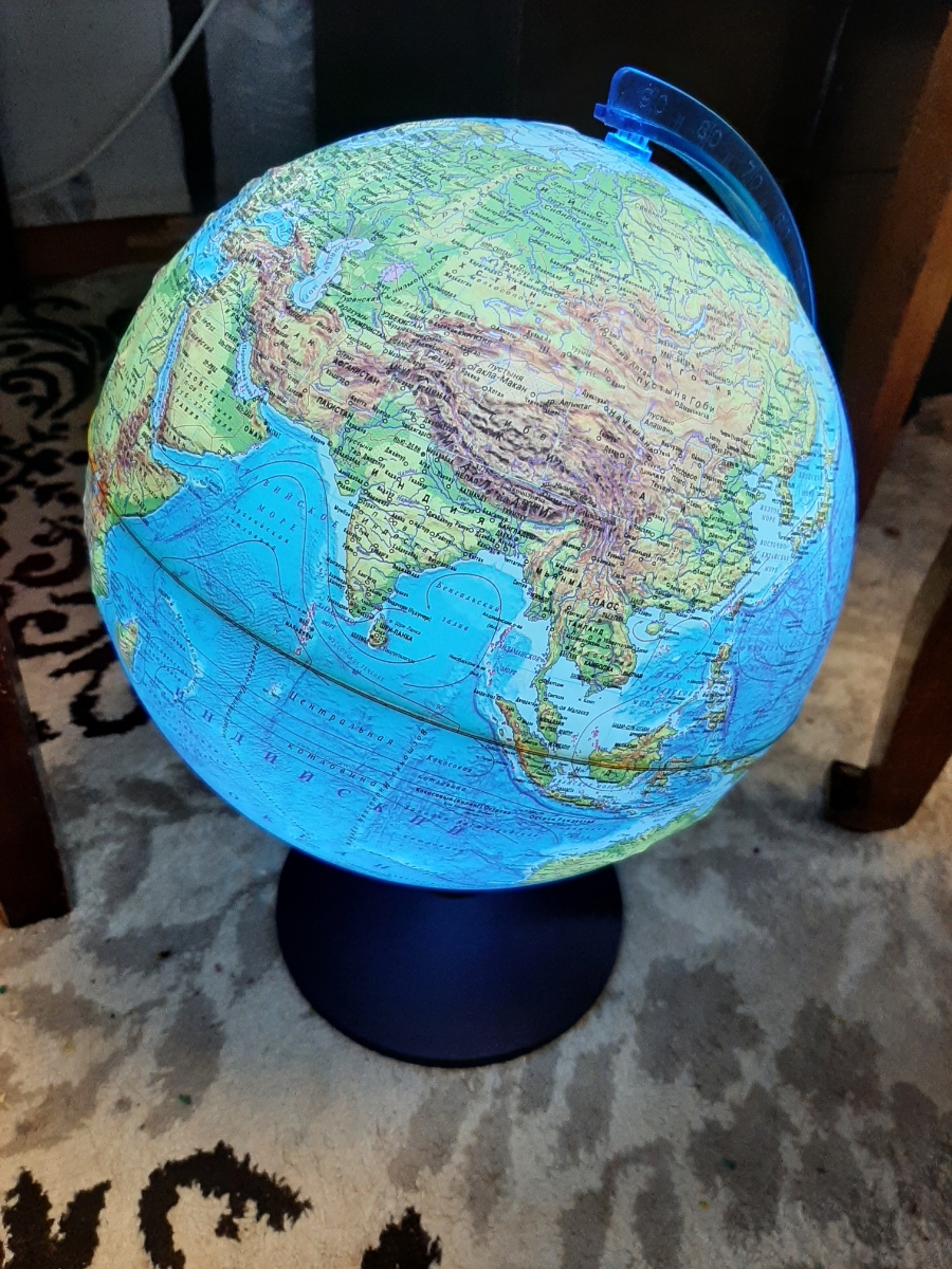 Глобус Земли Globen физический, рельефный с подсветкой от батареек, диаметр 32 см.