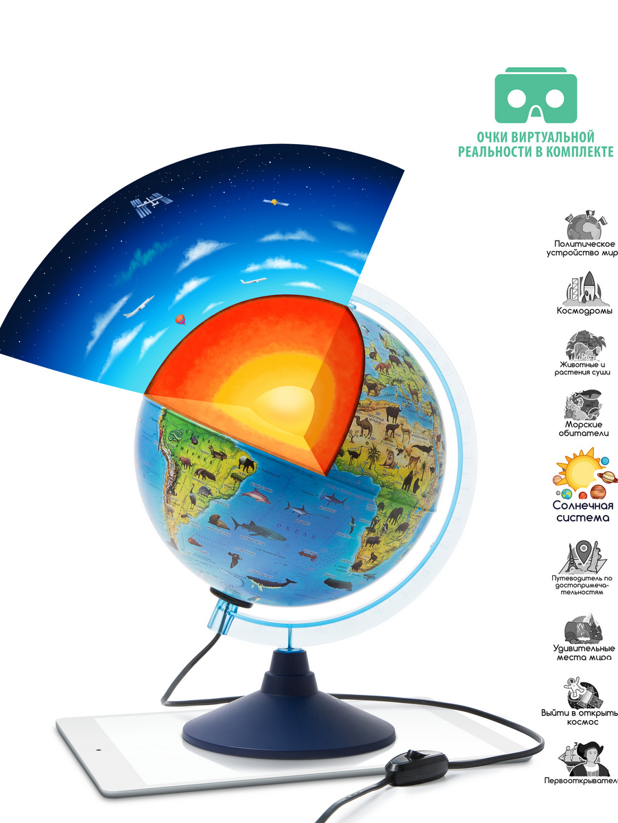 Интерактивный глобус Зоогеографический (Детский) 32 см.,с LED-подсветкой + VR очки