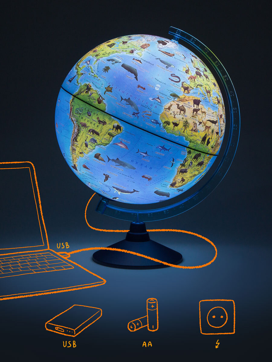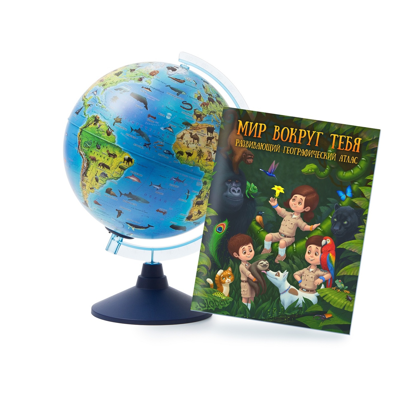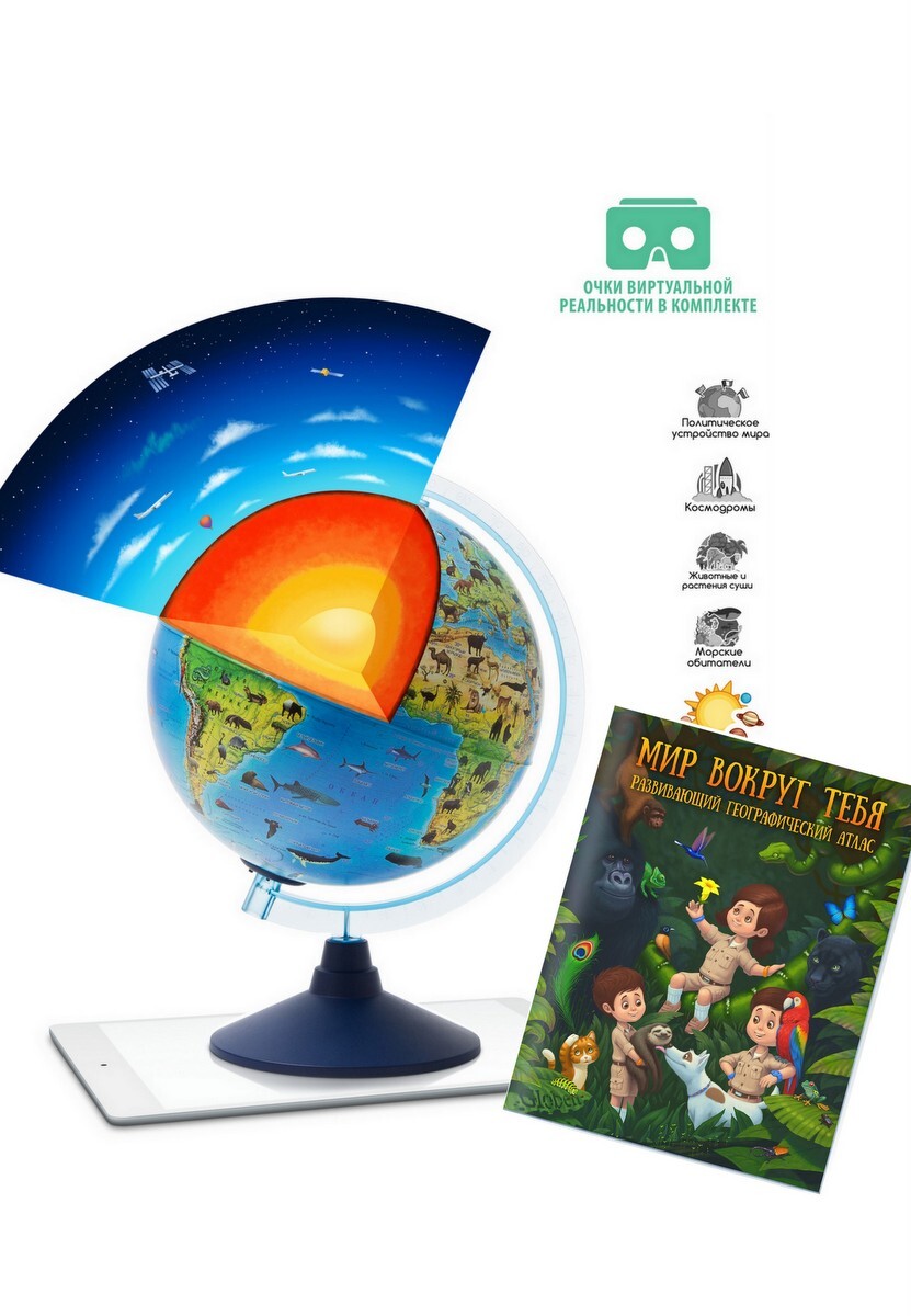Интерактивный глобус Зоогеографический (Детский) 25 см.,с подсветкой от батареек + Атлас + VR очки