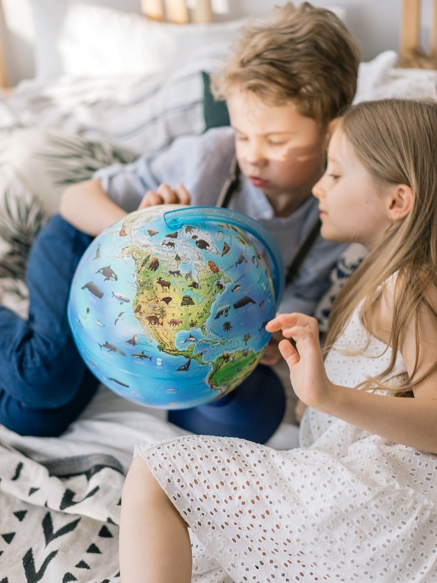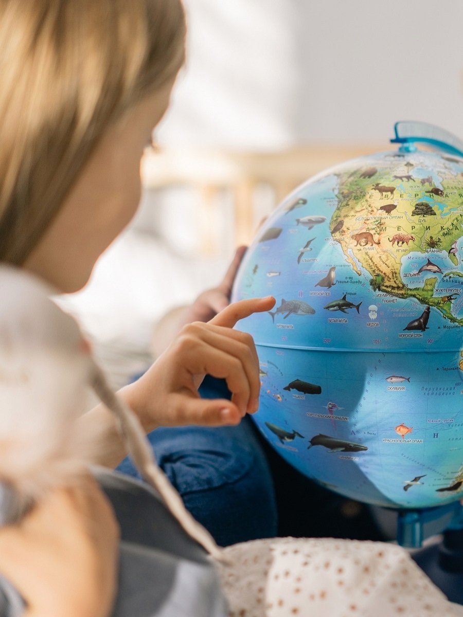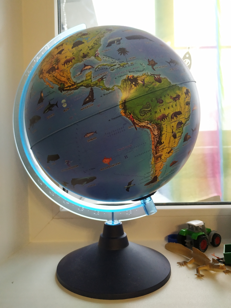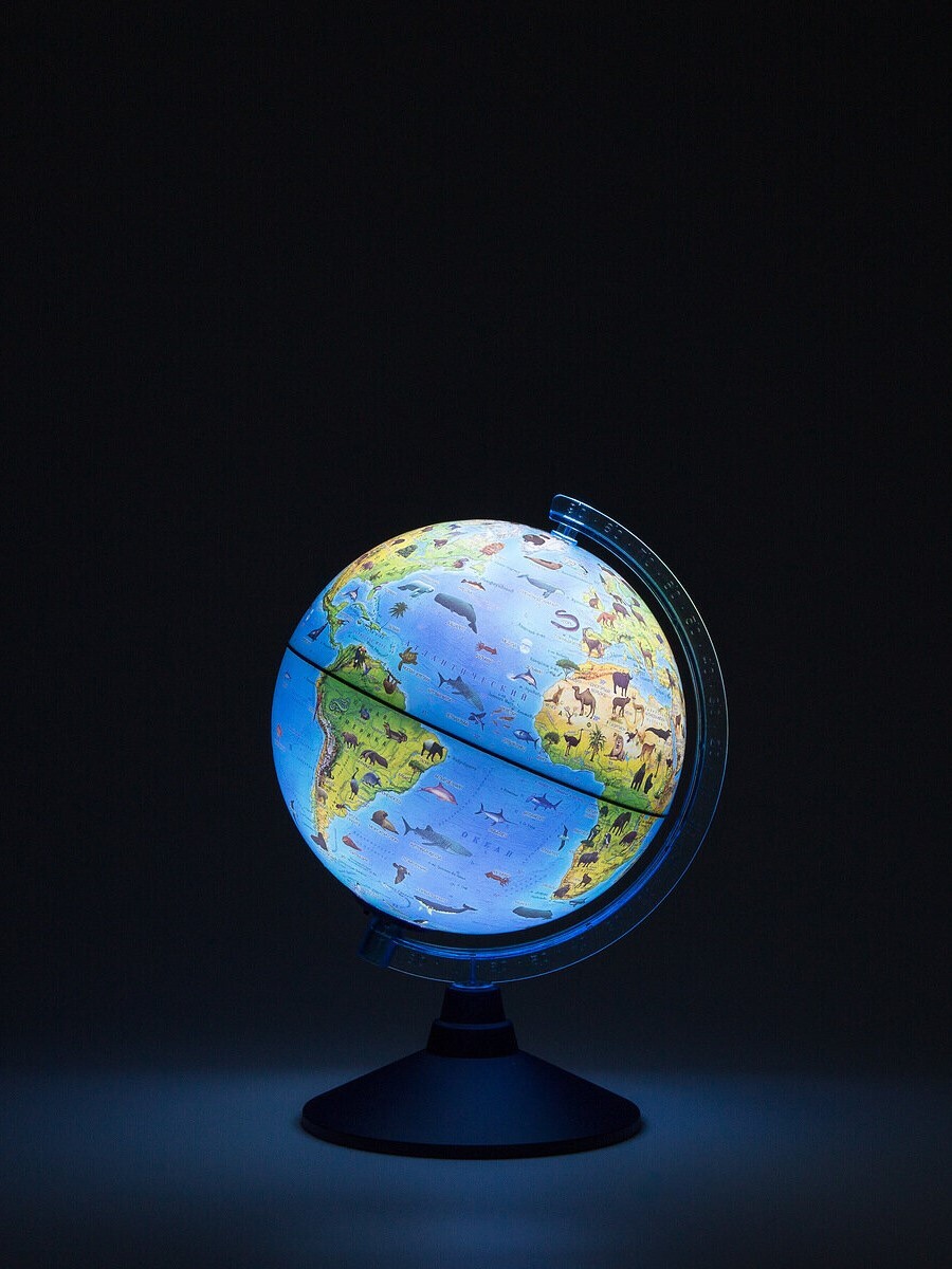 Интерактивный глобус Зоогеографический (Детский) 25 см.,с подсветкой от батареек + Атлас + VR очки