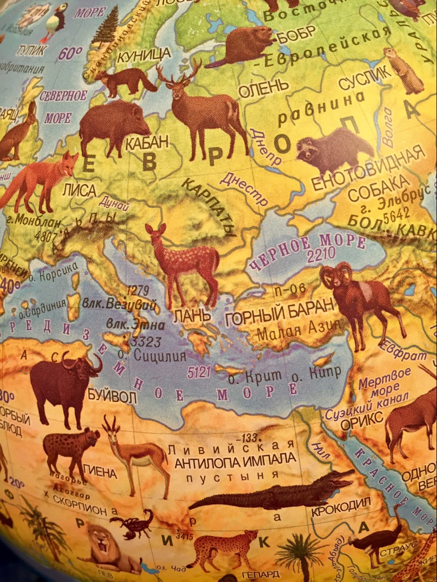 Globen / Глобус Зоогеографический на английском языке с подсветкой от батареек, 25 см