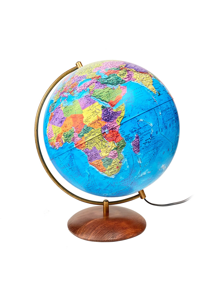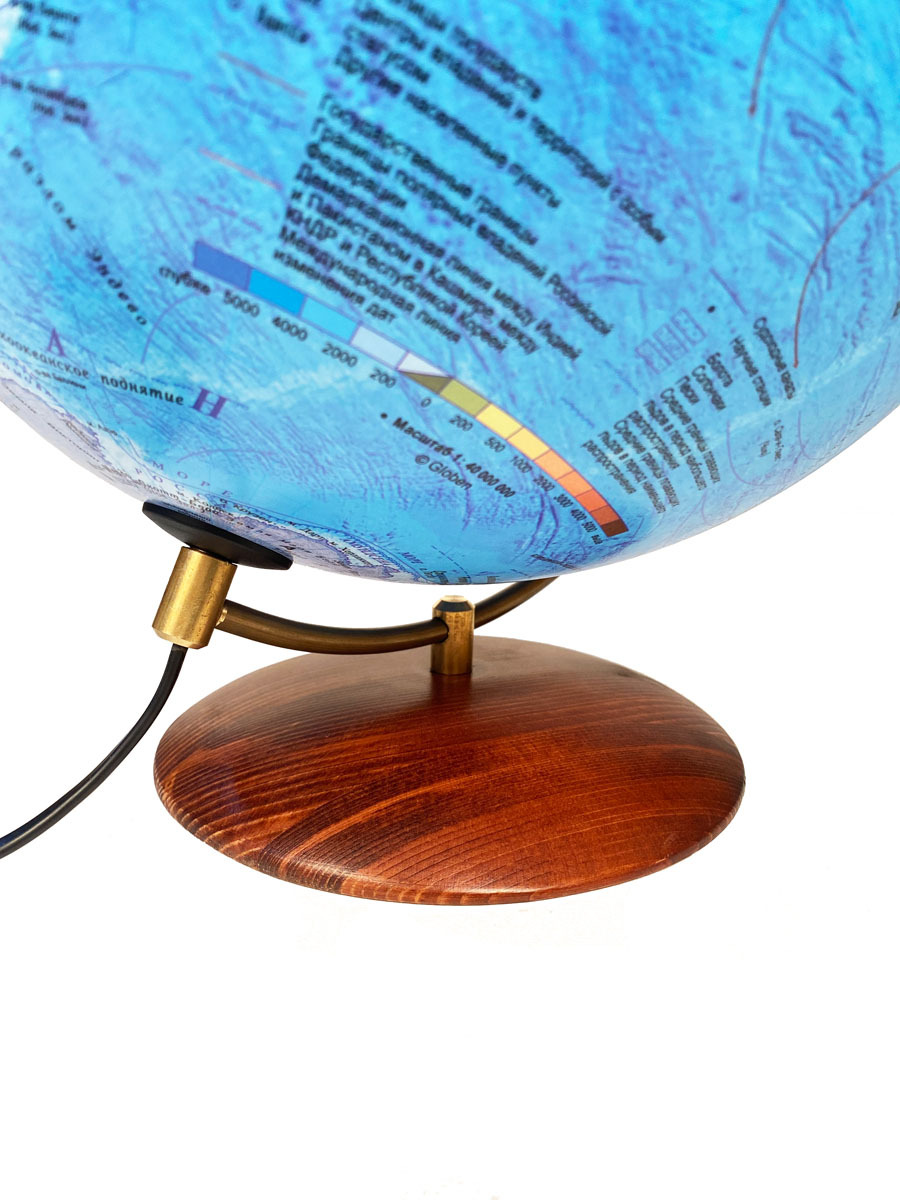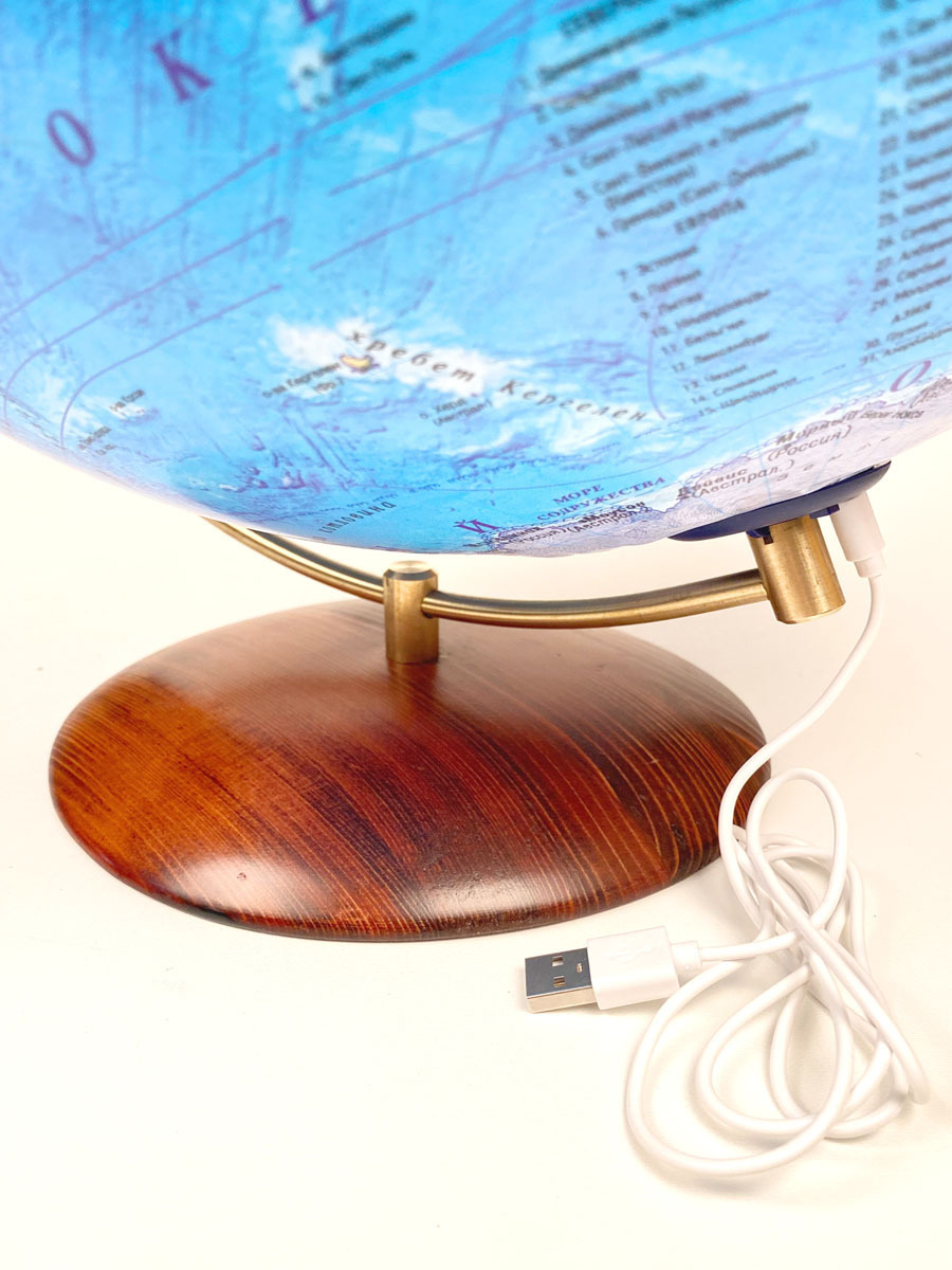 Глобус Земли на подставке из натурального дерева, политический с LED-подсветкой, диаметр 32 см.