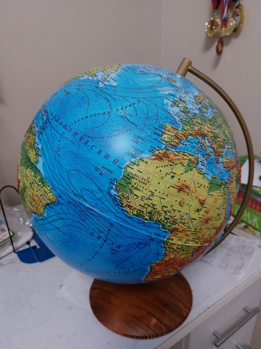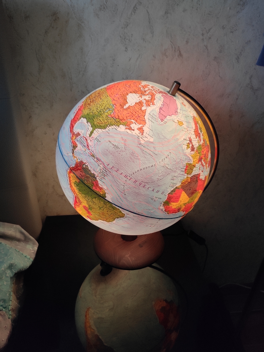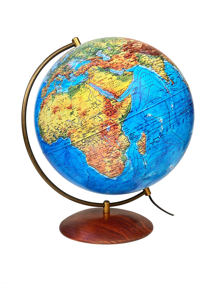 Глобус Земли на подставке из натурального дерева, политический с LED-подсветкой, диаметр 32 см.