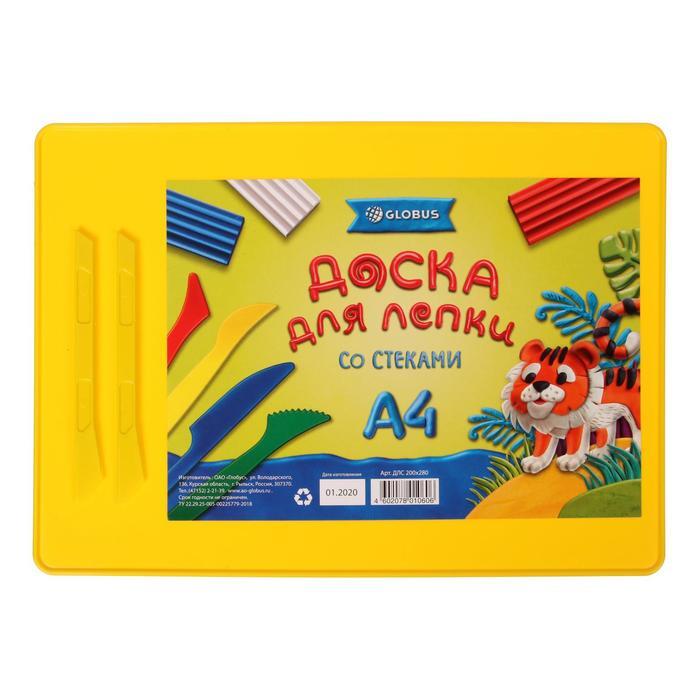 Доска для лепки А4, пластиковая + 2 стека GLOBUS