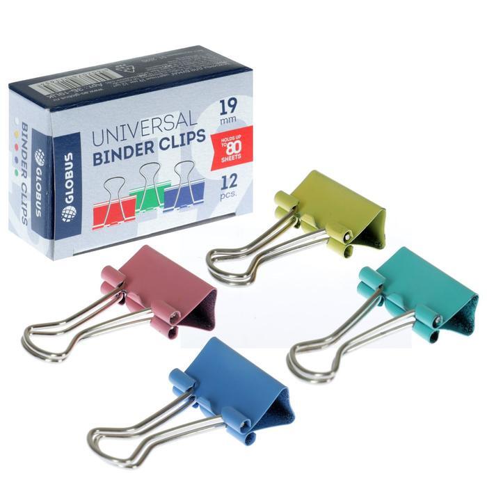 Зажимы для бумаг GLOBUS, 12 шт., 19 мм, цветные