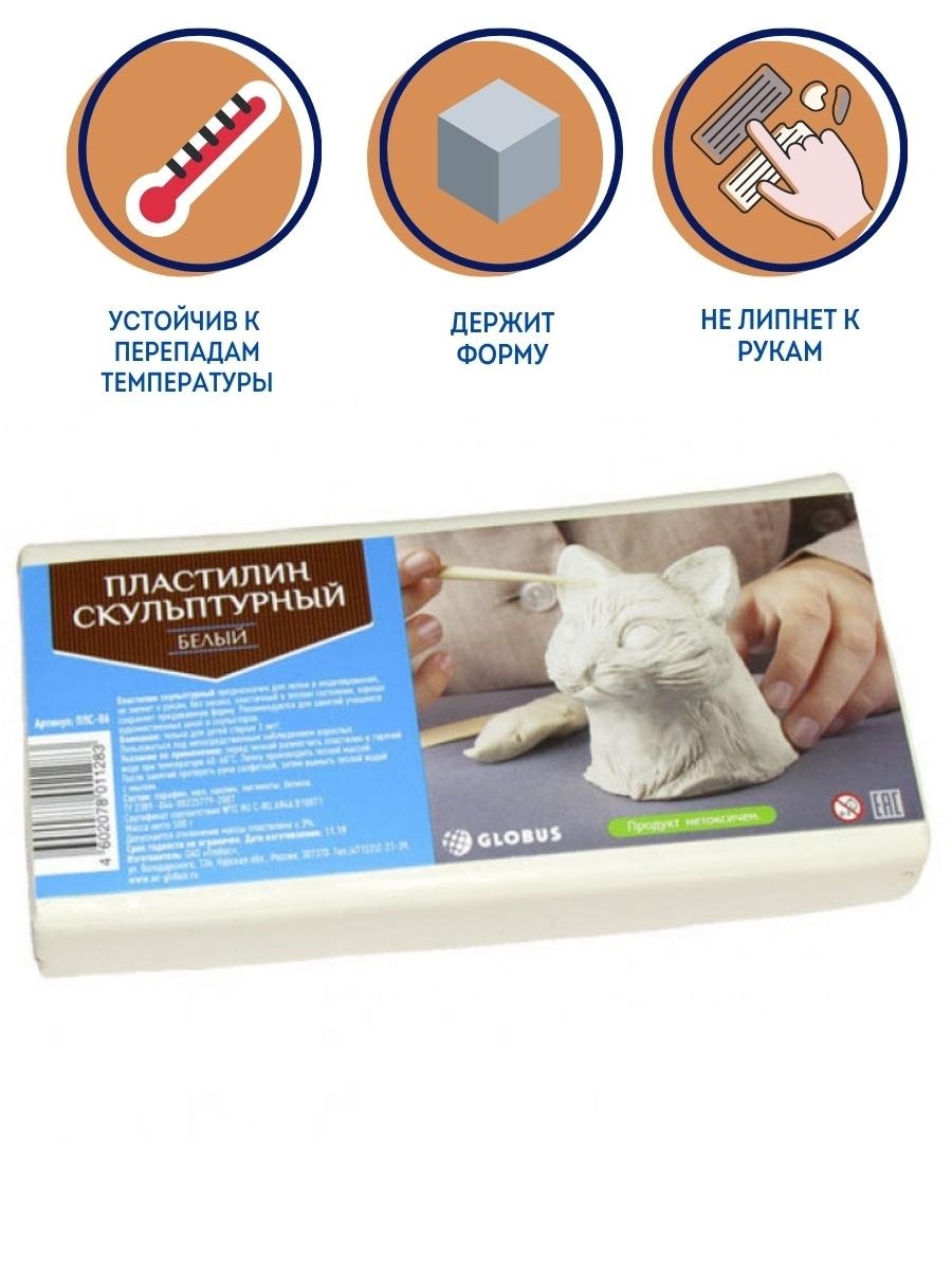 Пластилин GLOBUS скульптурный серый, 0,5 кг, мягкий ПЛС-05