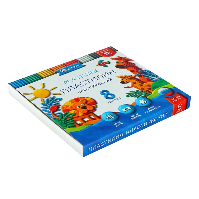 Пластилин GLOBUS "Классический", 8 цветов, 160 г, рекомендован педагогами