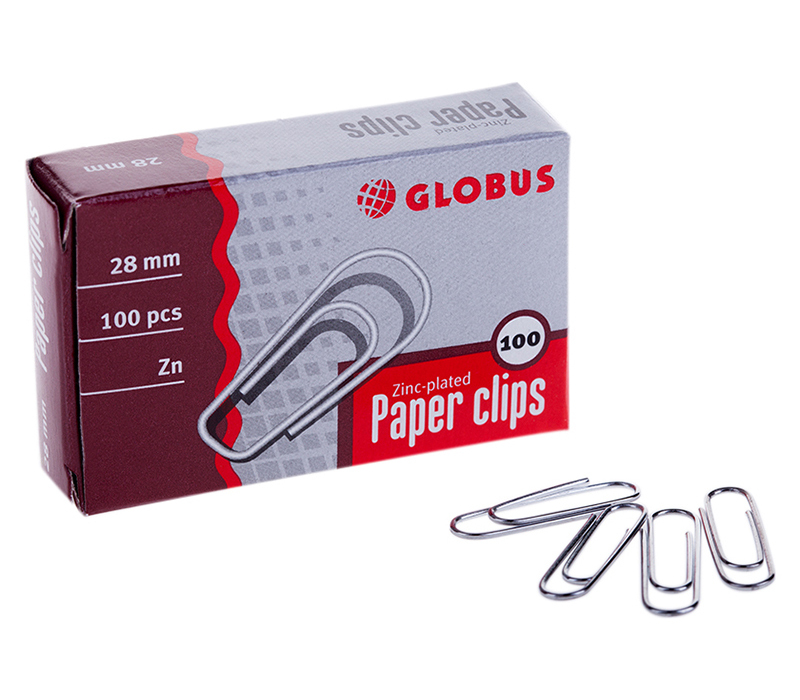 Скрепки канцелярские Globus 28 мм металлические оцинкованные, 100 штук в картонной коробке