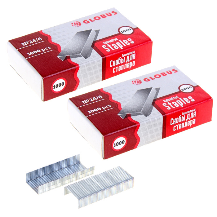 Globus Скобы для степлера №24/6, 2000 шт. (2 упаковки по 1000 штук)