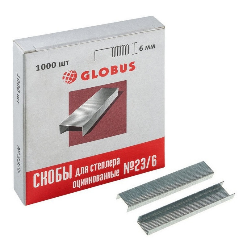 Globus / Набор оцинкованных скоб для степлера №23/6, 2 упаковки по 1000 шт