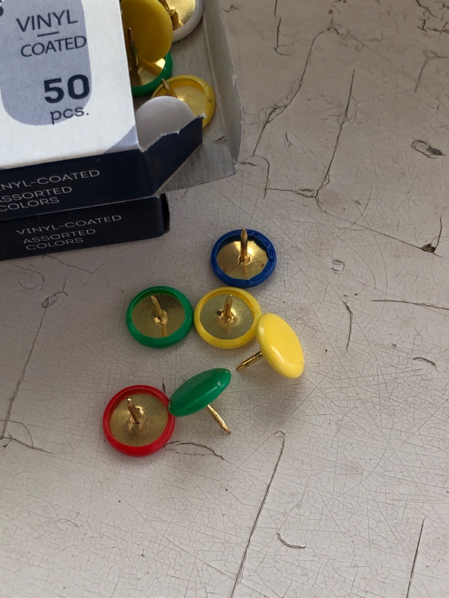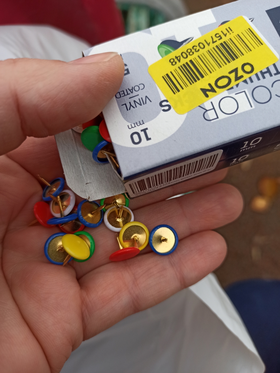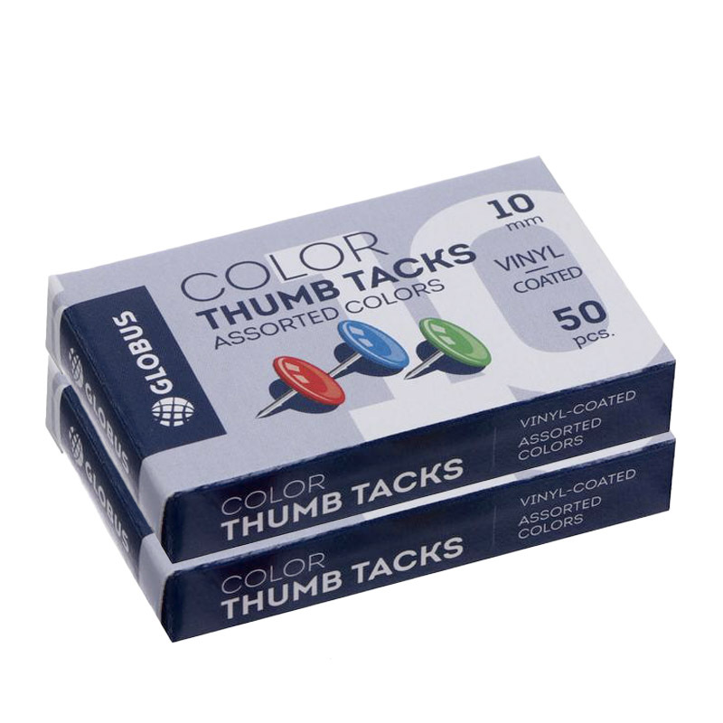 "Globus". Кнопки-гвоздики, канцелярские, цветные 10мм. 2 упаковки по 50 штук..