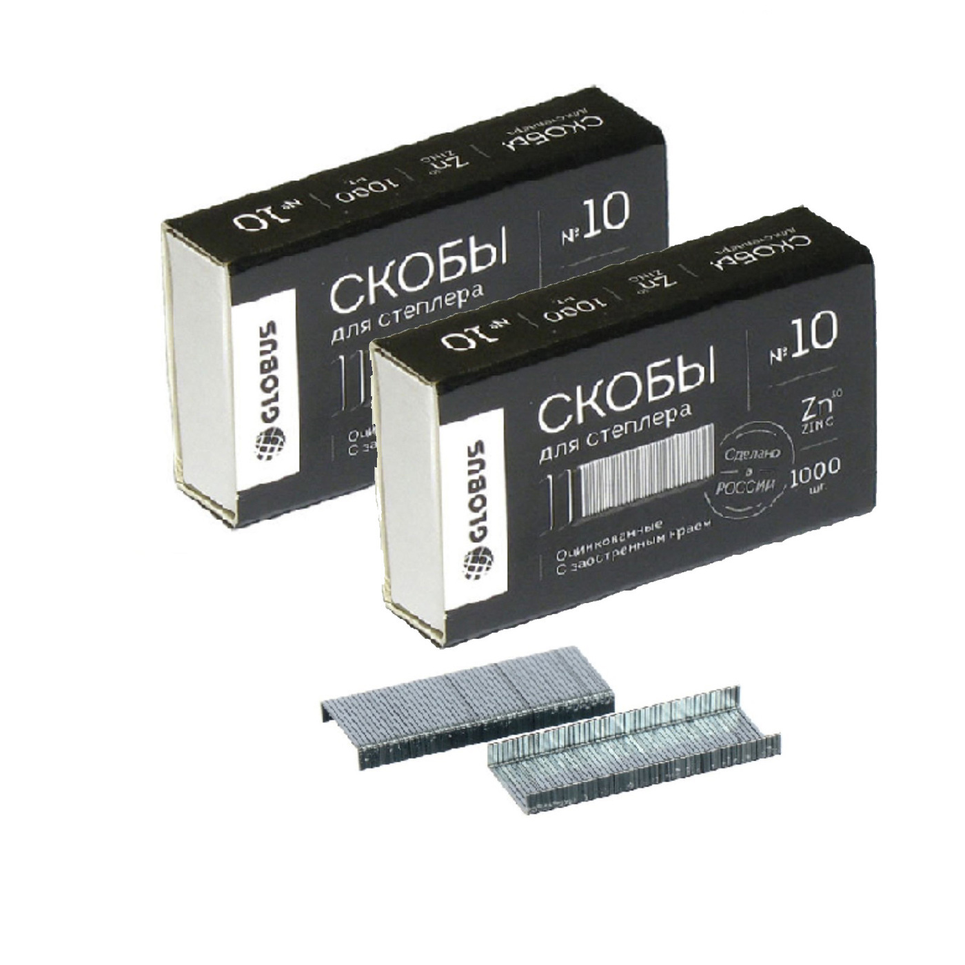 Globus Скобы для степлера №10, 2000 шт. (2 упаковки по 1000 штук)