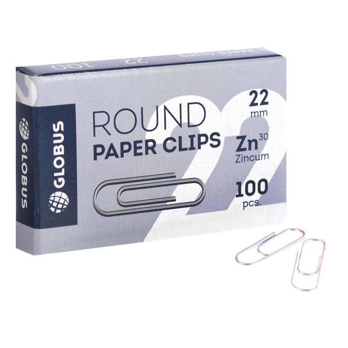 Скрепки канцелярские GLOBUS, 100 шт, 22 мм, оцинкованные