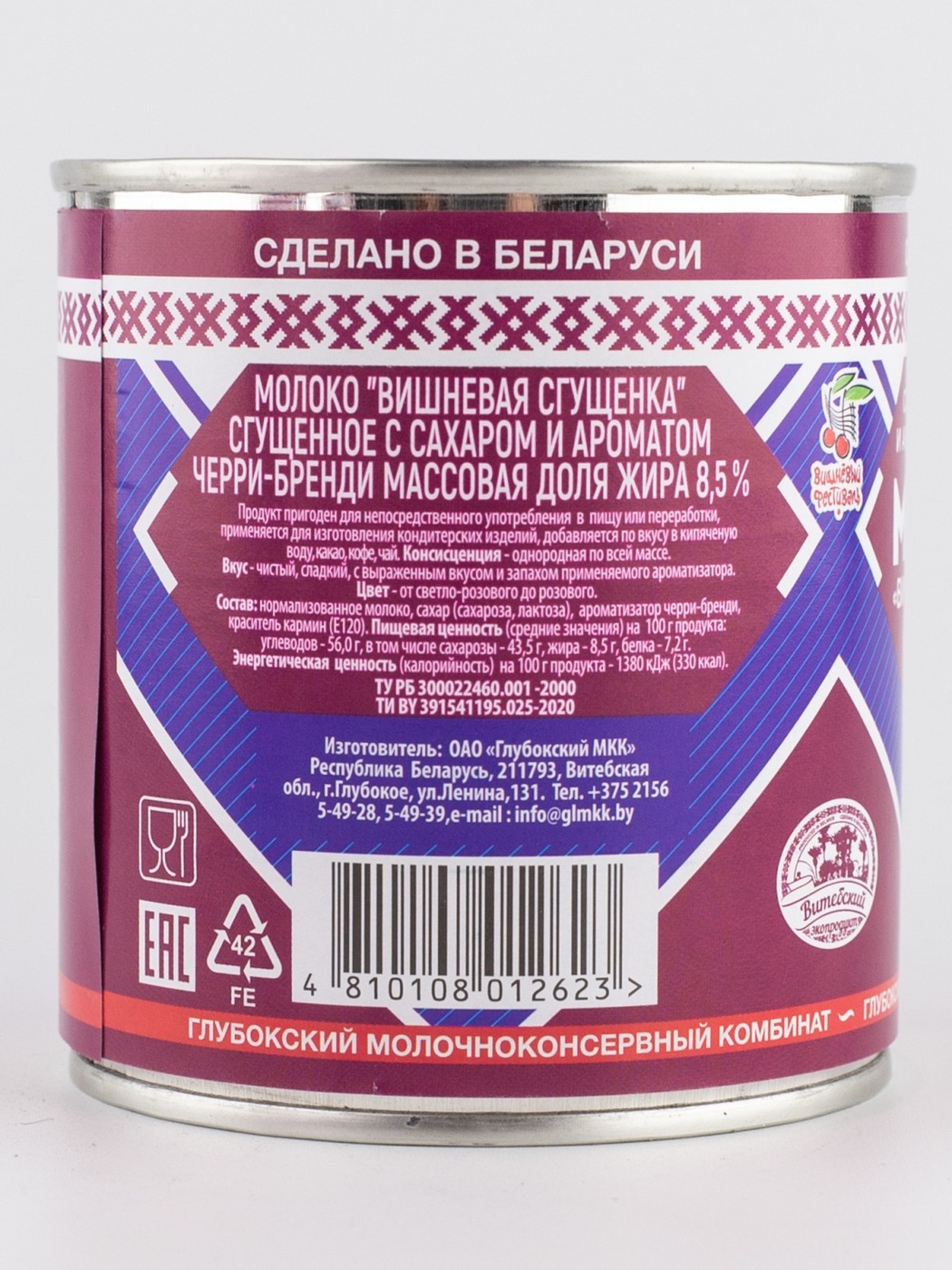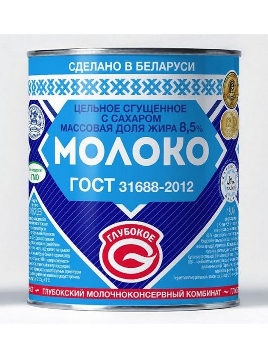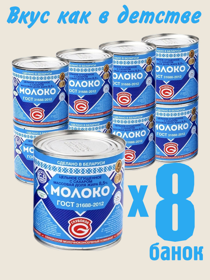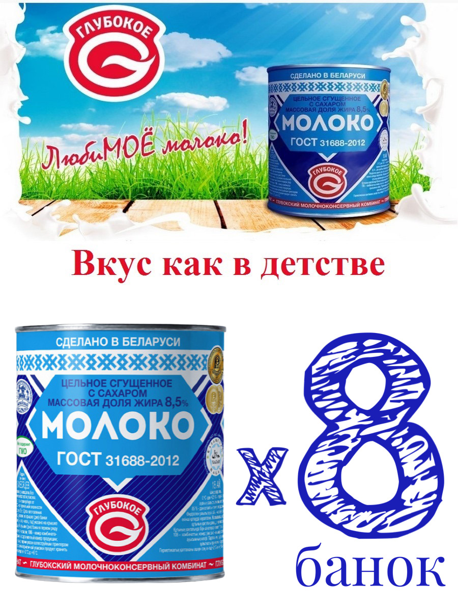 Молоко сгущённое с сахаром жирность 8,5% по ГОСТ из цельного молока, 8 банок по 380гр