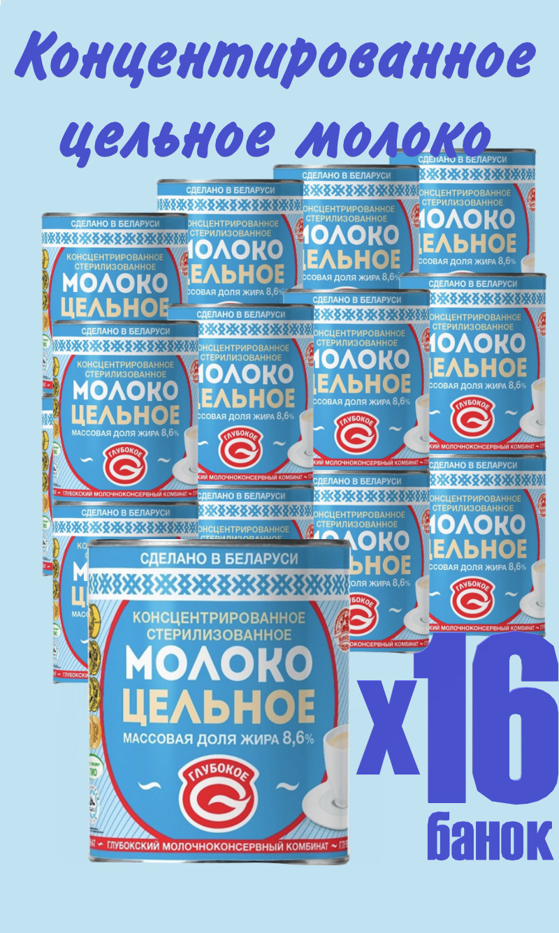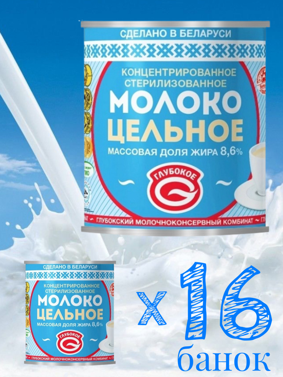 Молоко концентрированное стерилизованное цельное массовая доля жира 8,6% 16 банок по 300 грамм