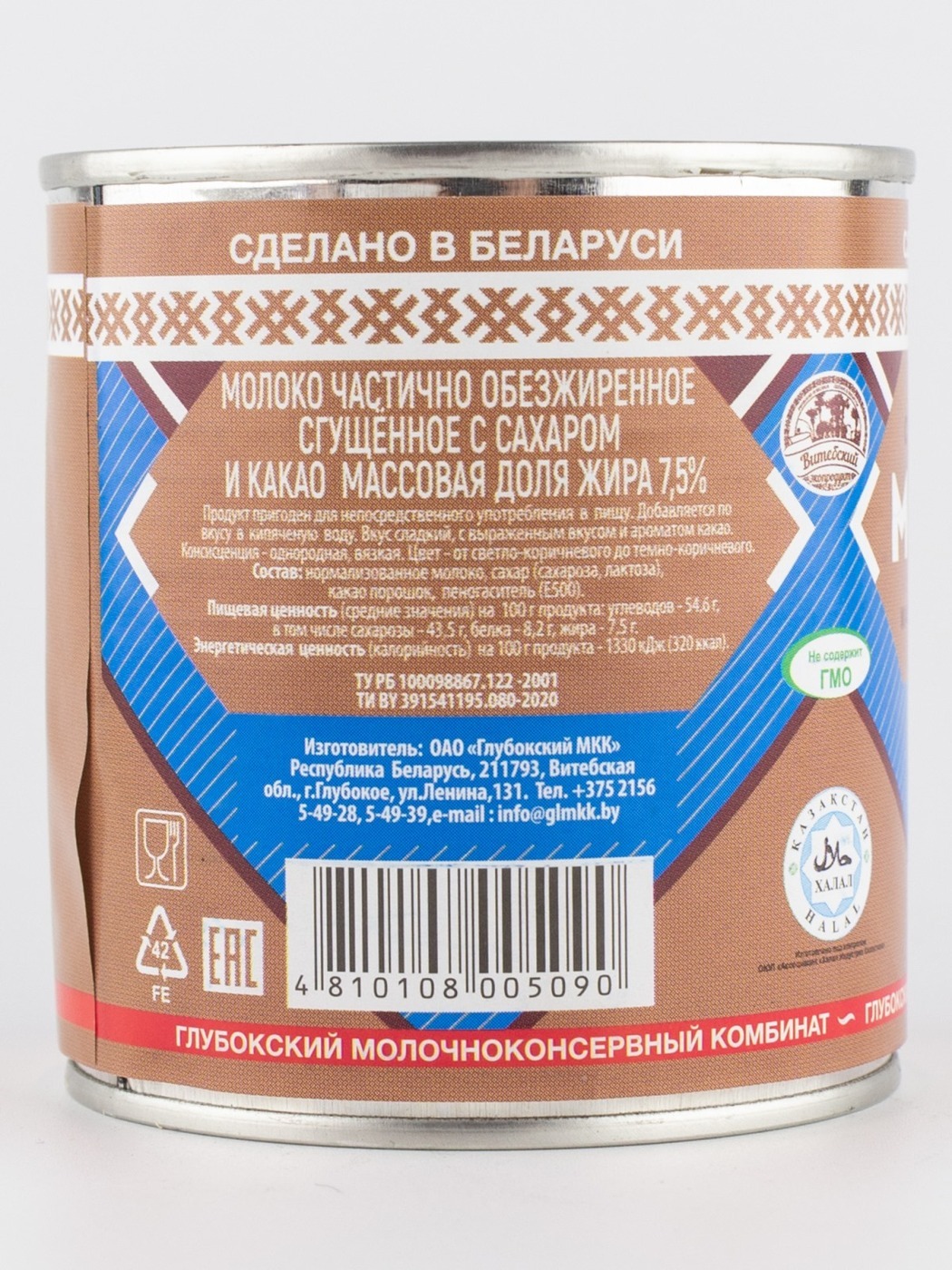 Молоко сгущенное с сахаром и какао 7,5% 2 шт по 380г