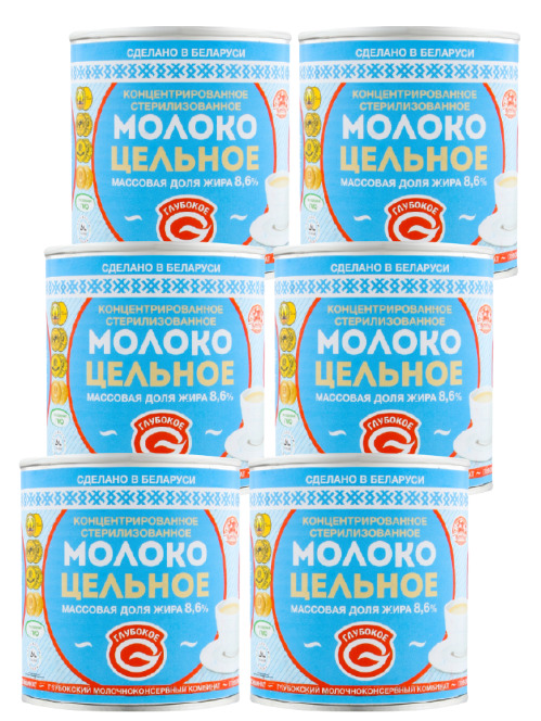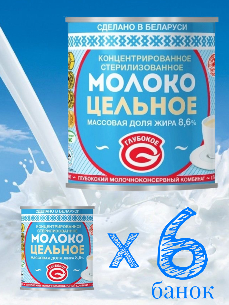 Молоко концентрированное стерилизованное цельное массовая доля жира 8,6% 6 банок по 300 гр