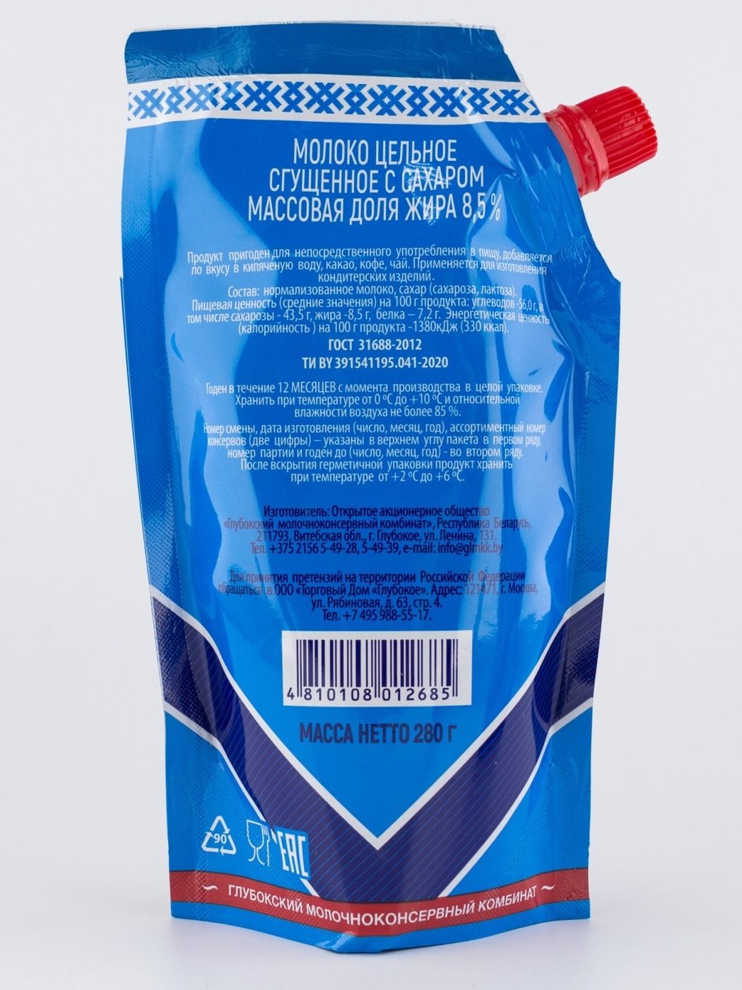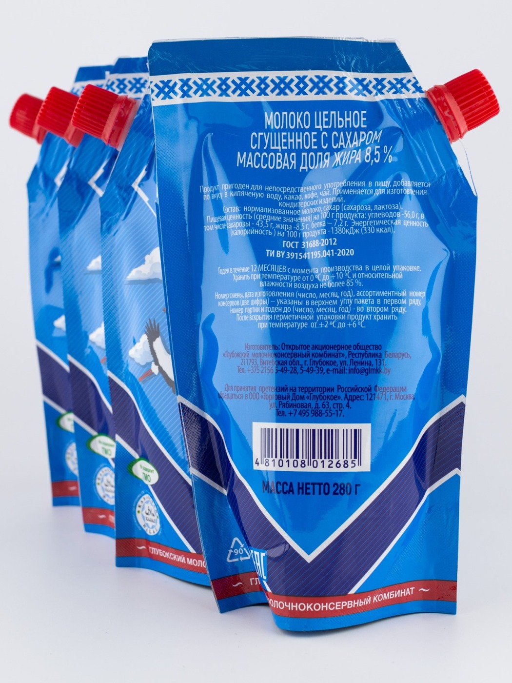 Молоко сгущенное с сахаром дой-пак 8,5% 4 шт по 280г