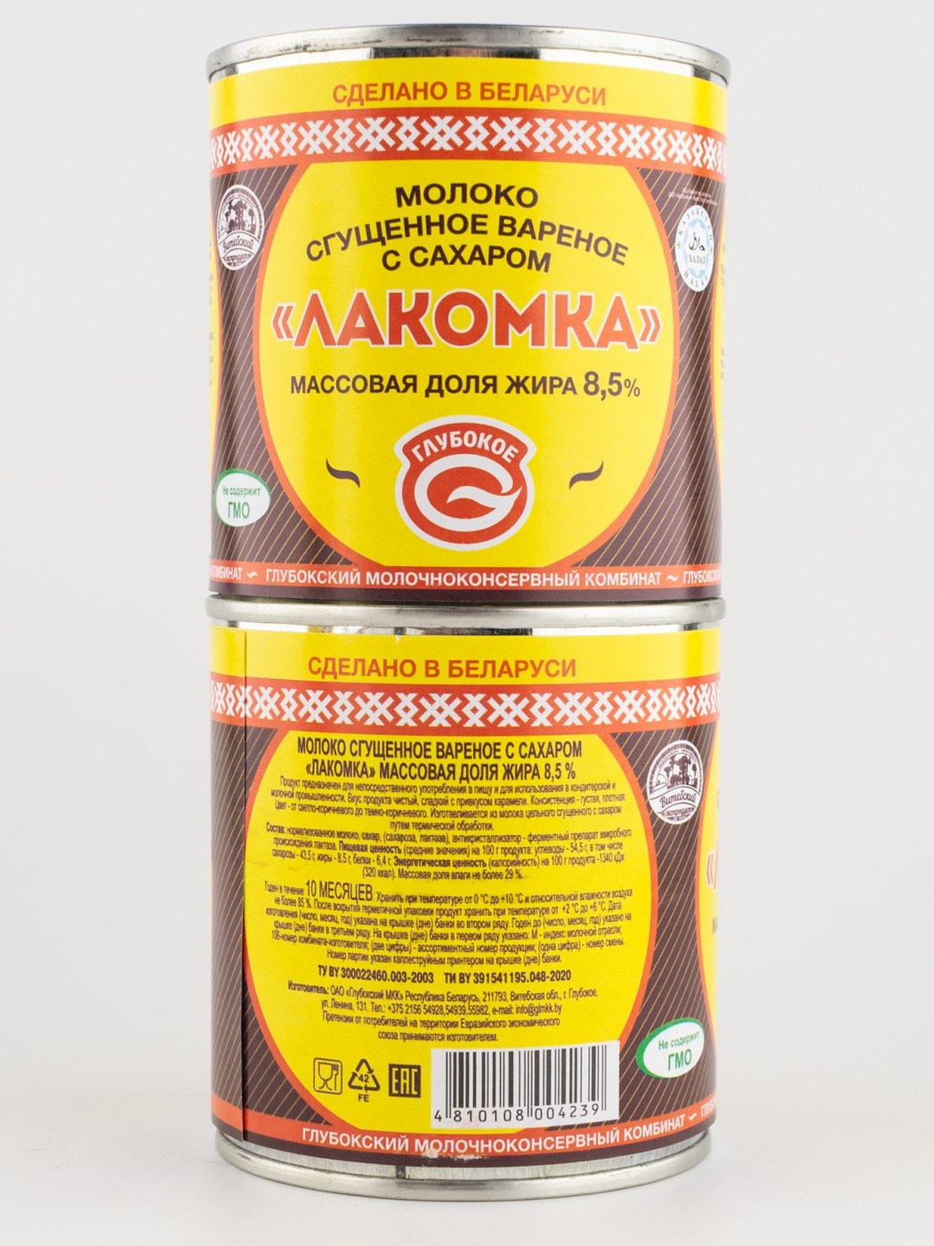 Молоко сгущенное с сахаром вареное Лакомка 8,5% 2 шт по 380г