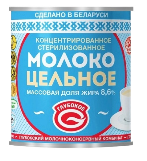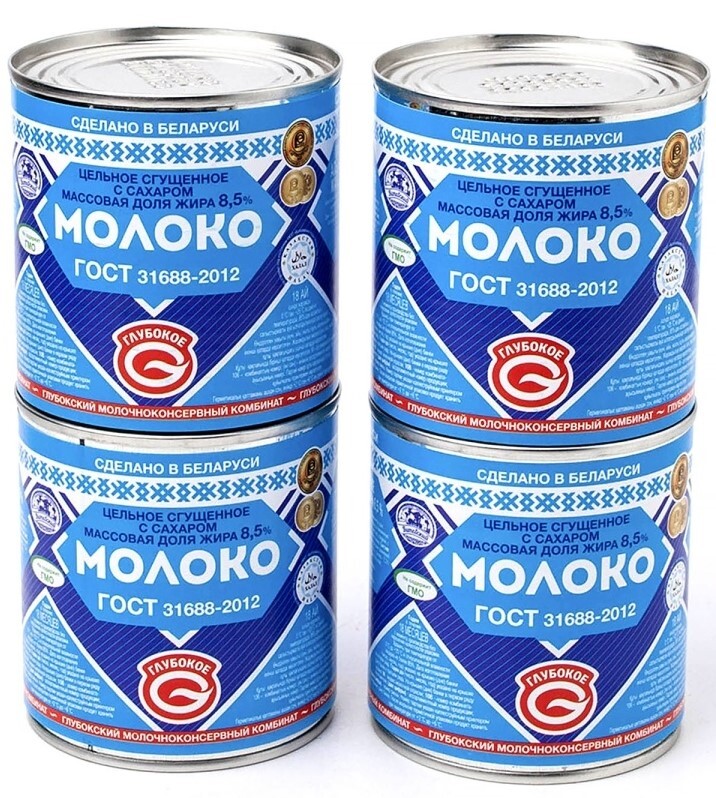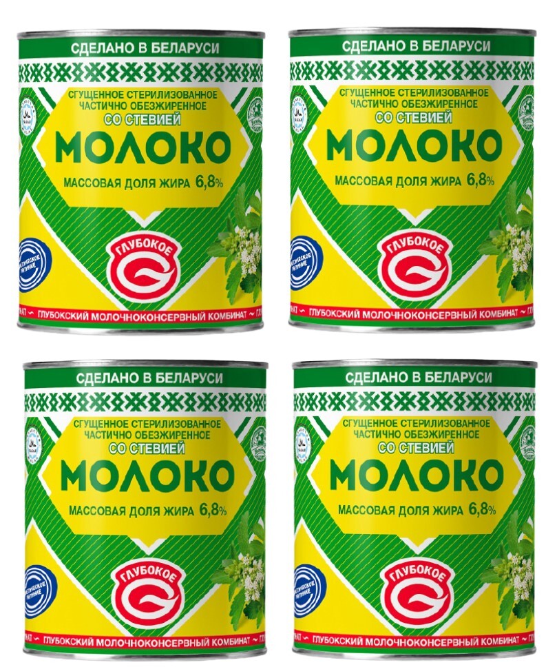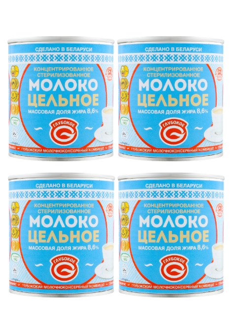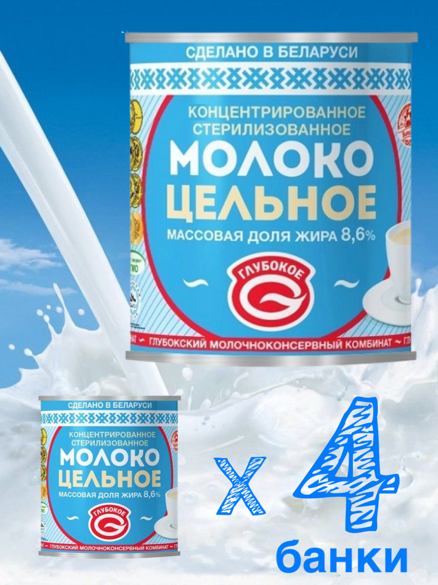 Молоко концентрированное стерилизованное цельное массовая доля жира 8,6% 4 банки по 300 гр