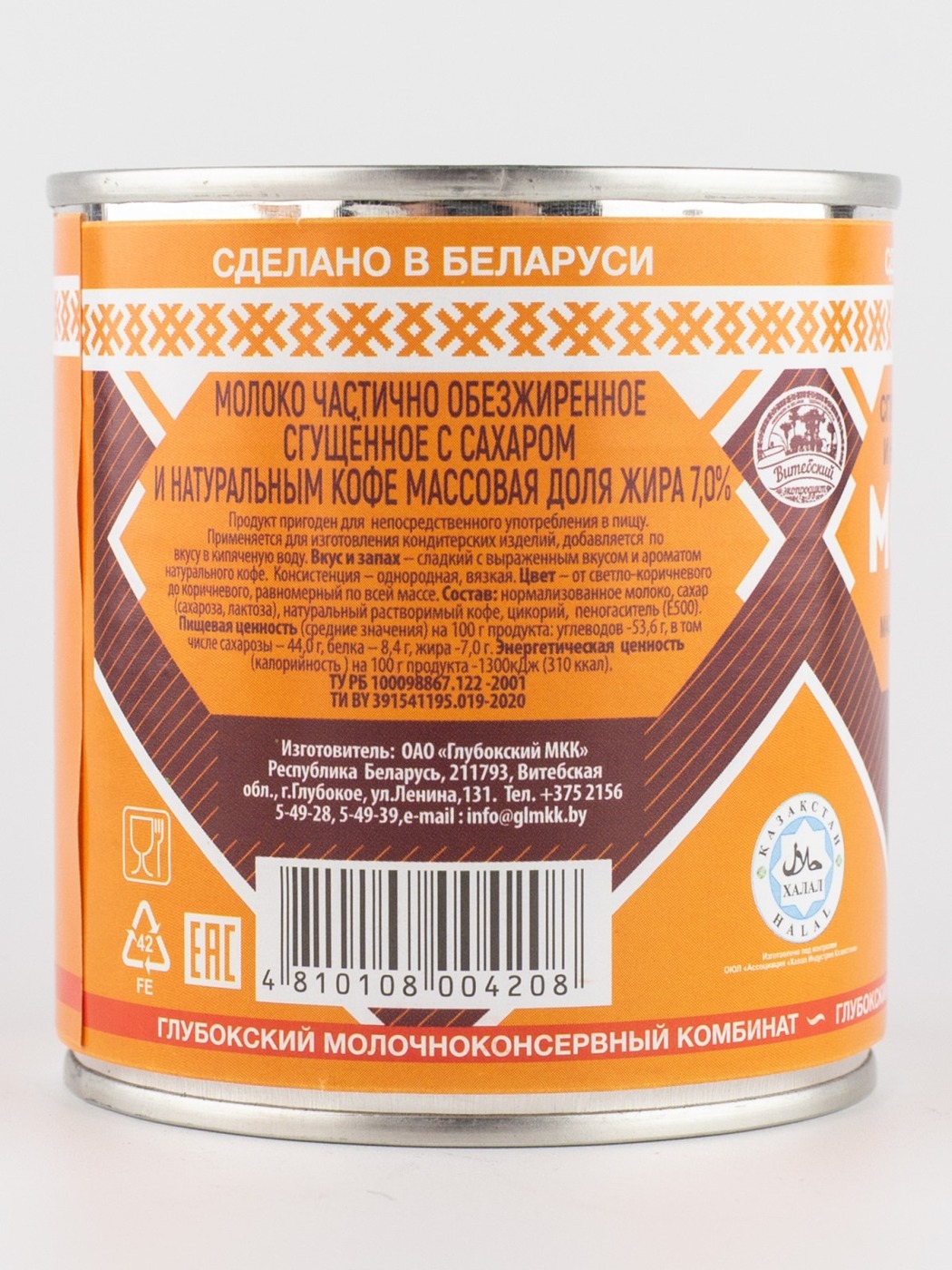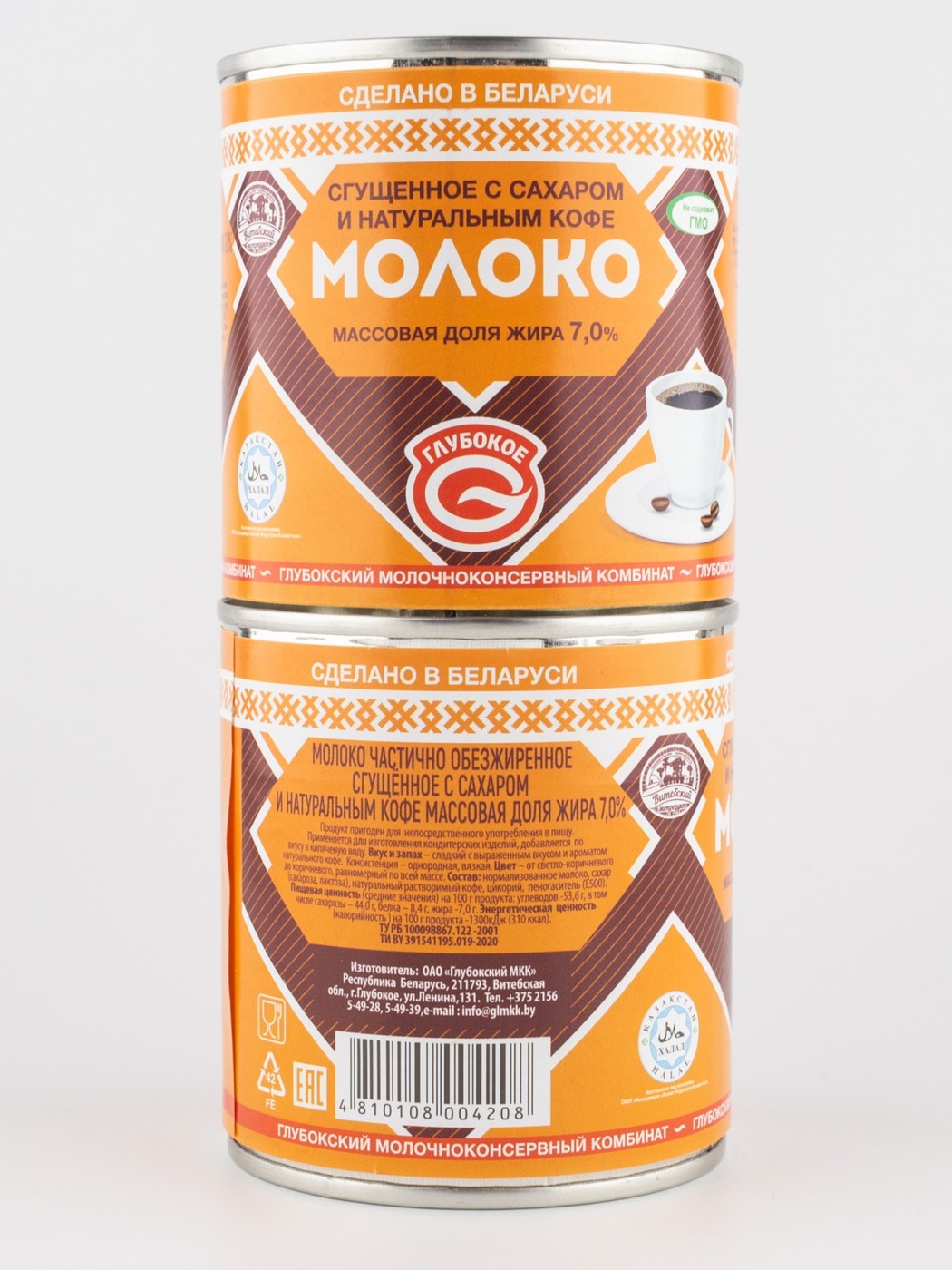 Молоко сгущенное с сахаром и натуральным кофе 7% 2 шт по 380г