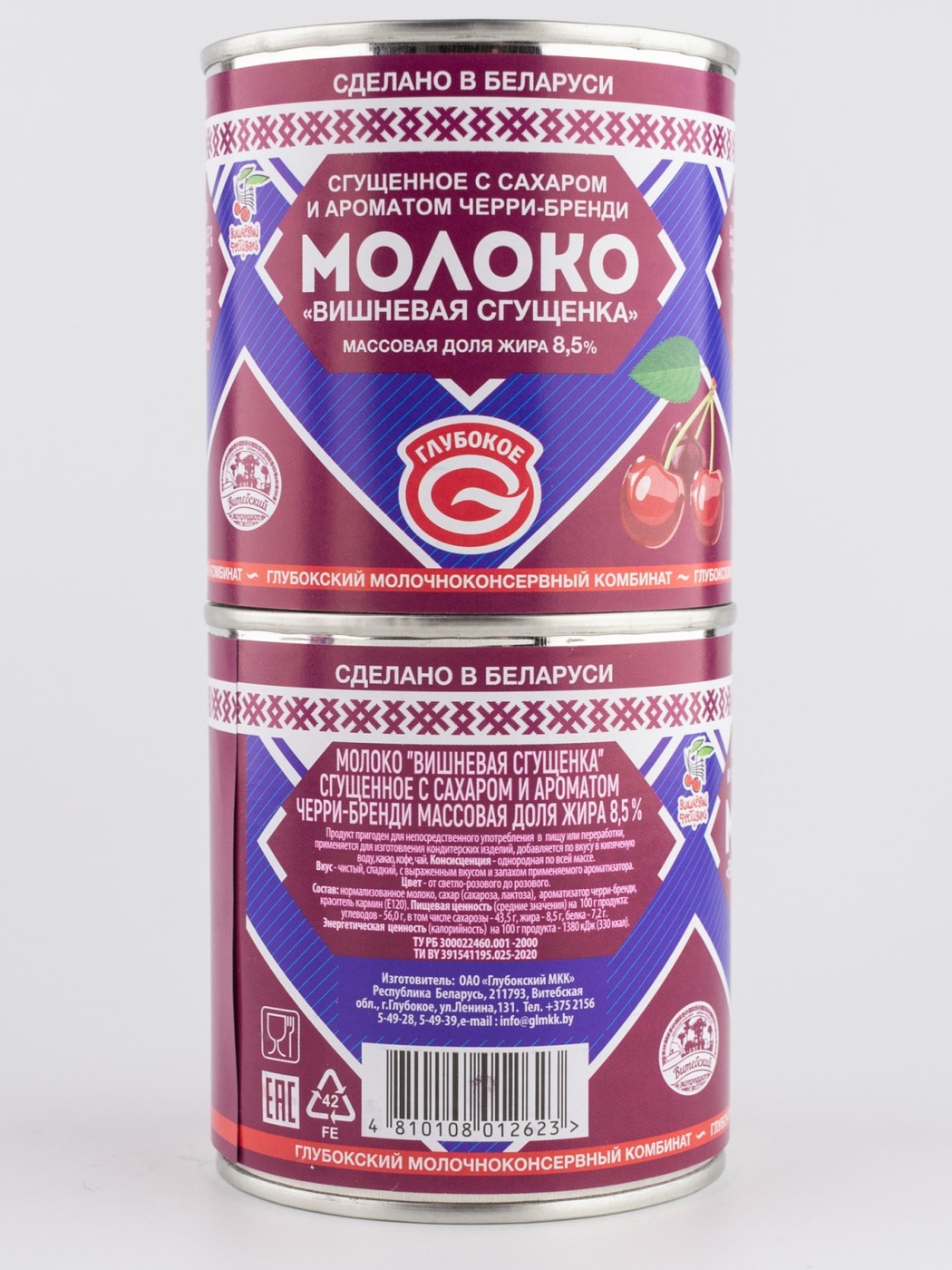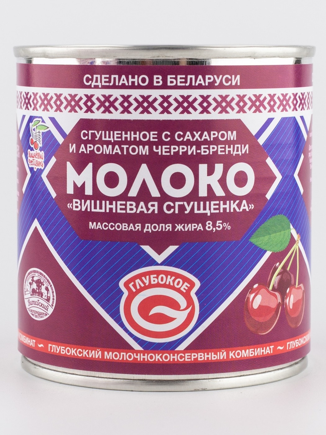 Молоко сгущенное с сахаром ароматом Черри-бренди Вишневая сгущенка 8,5% 2 шт по 380г