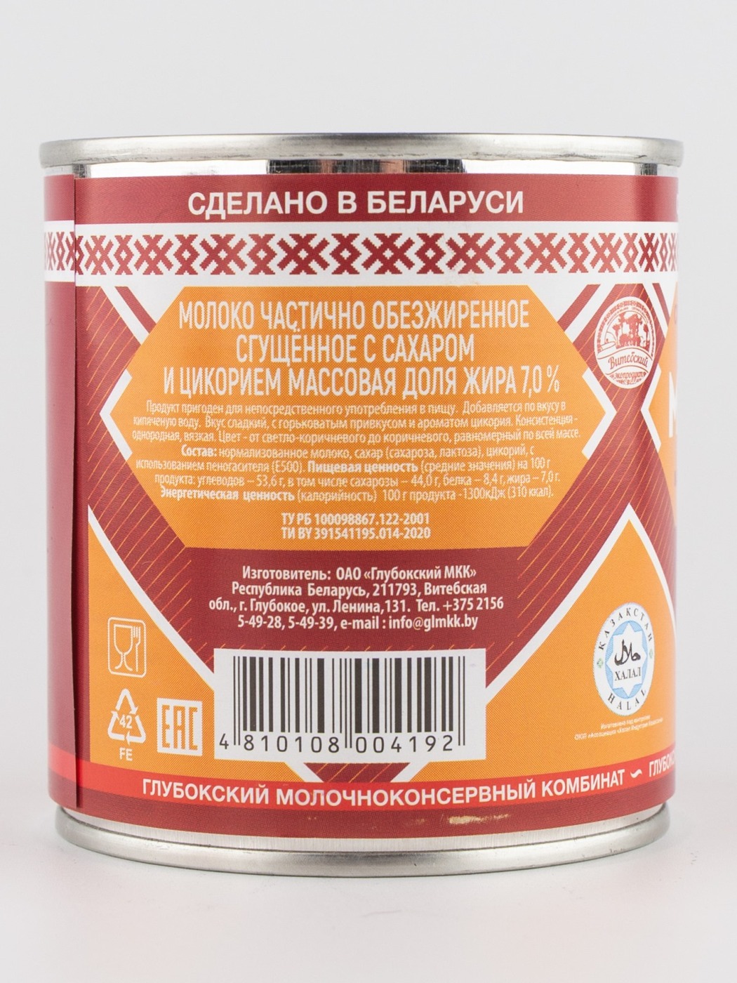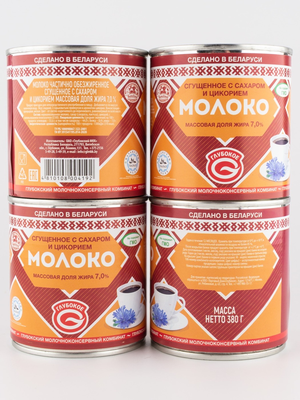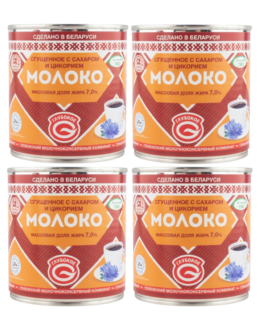 Молоко сгущенное с сахаром и цикорием 7% 4 шт по 380г