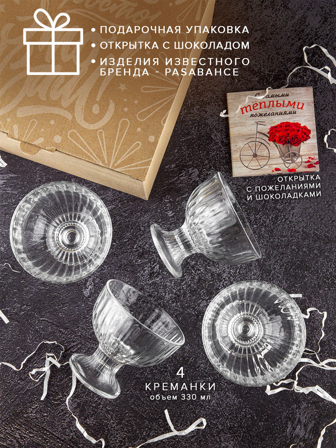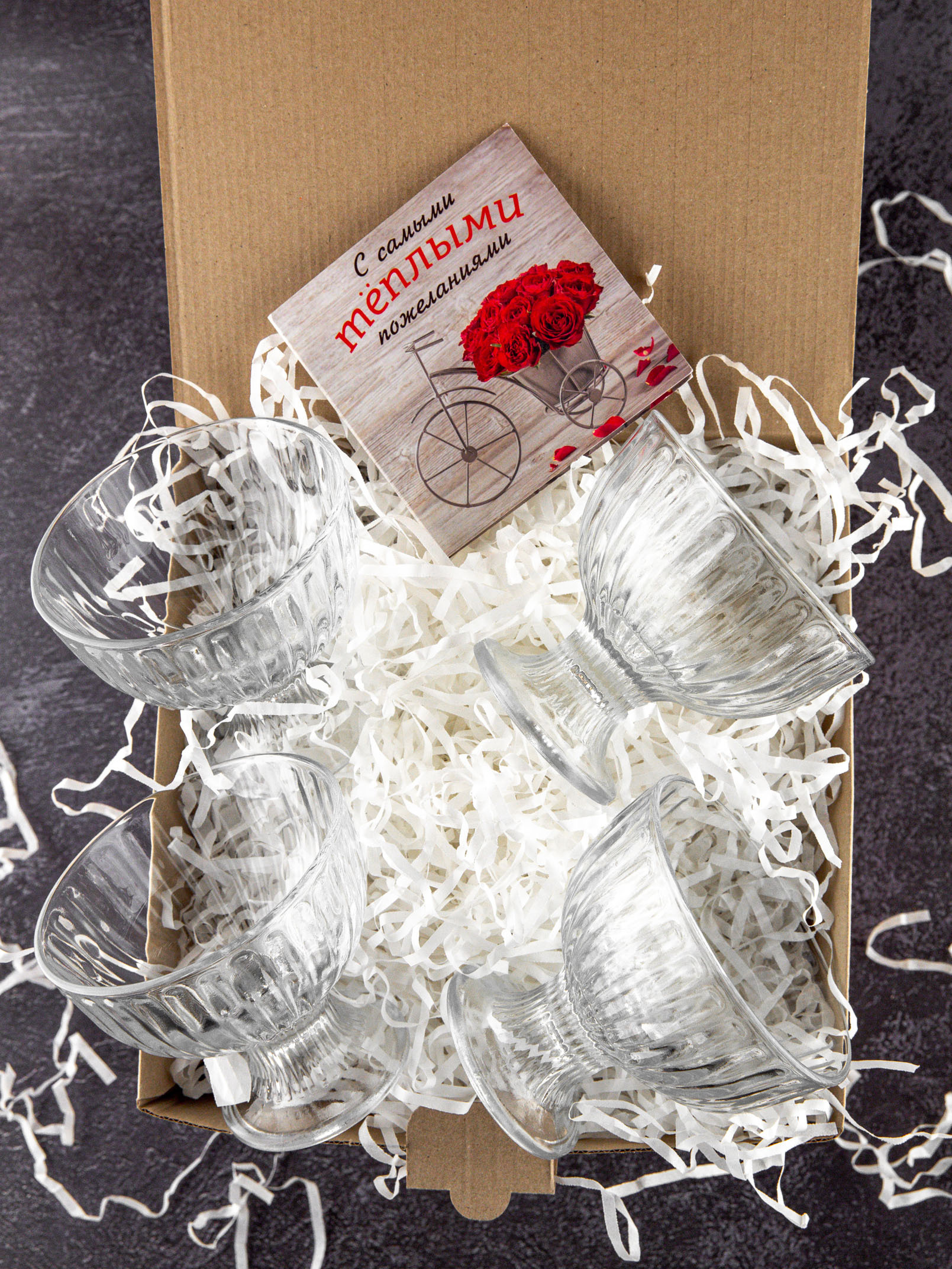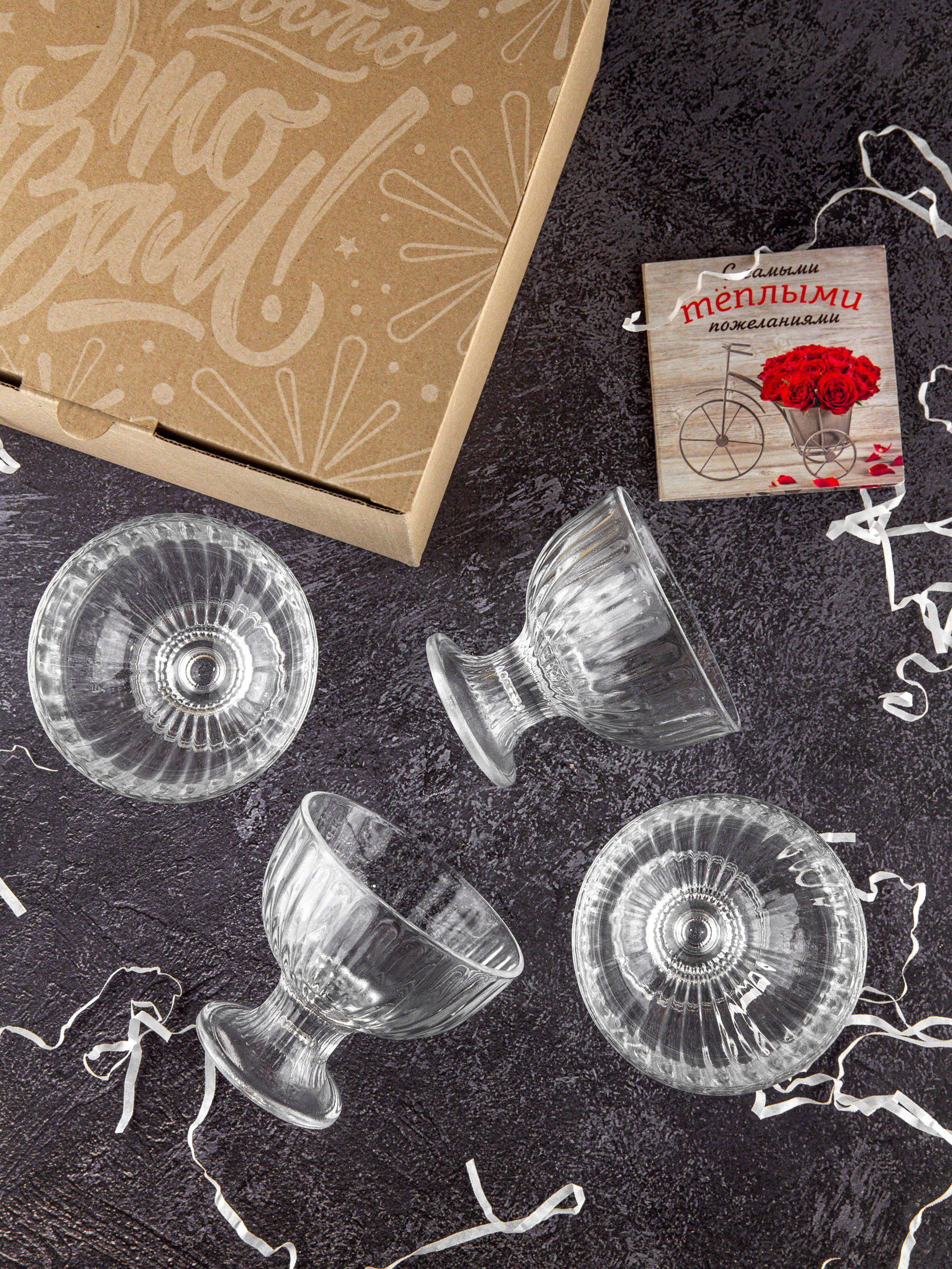 Набор креманок для мороженного 4 шт, ваза для десертов, порционный салатник,подарочная коробка