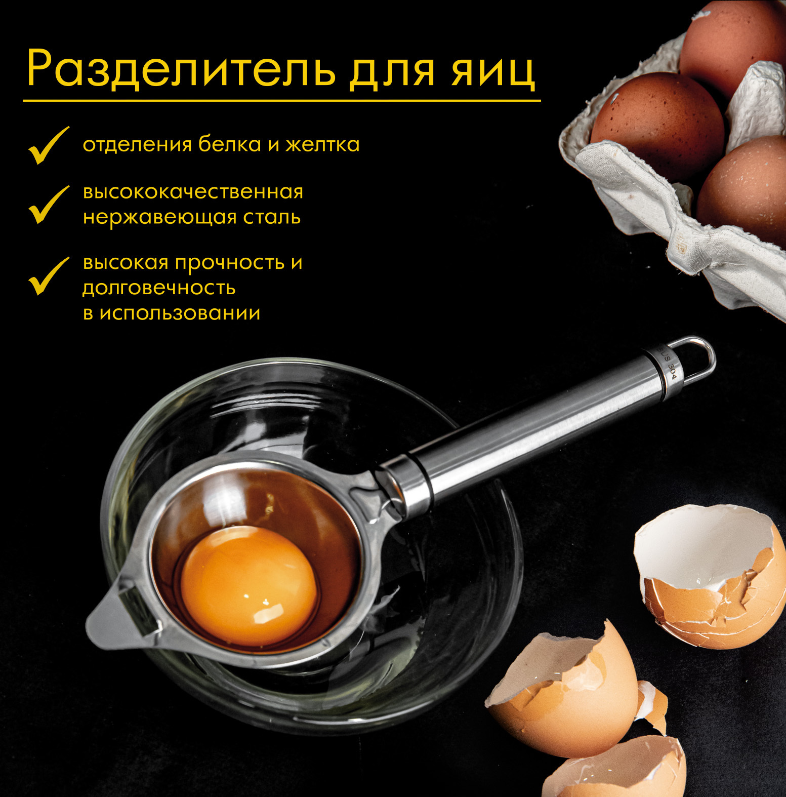 Разделитель для яиц (отделения белка и желтка), металлический, сеператор желтка. Уцененный товар