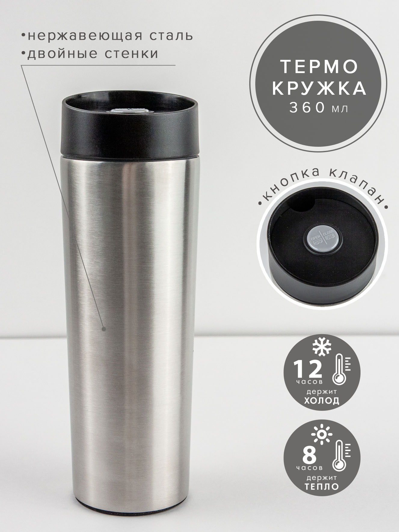 Термокружка из нержавеющей стали, 360 мл. Уцененный товар