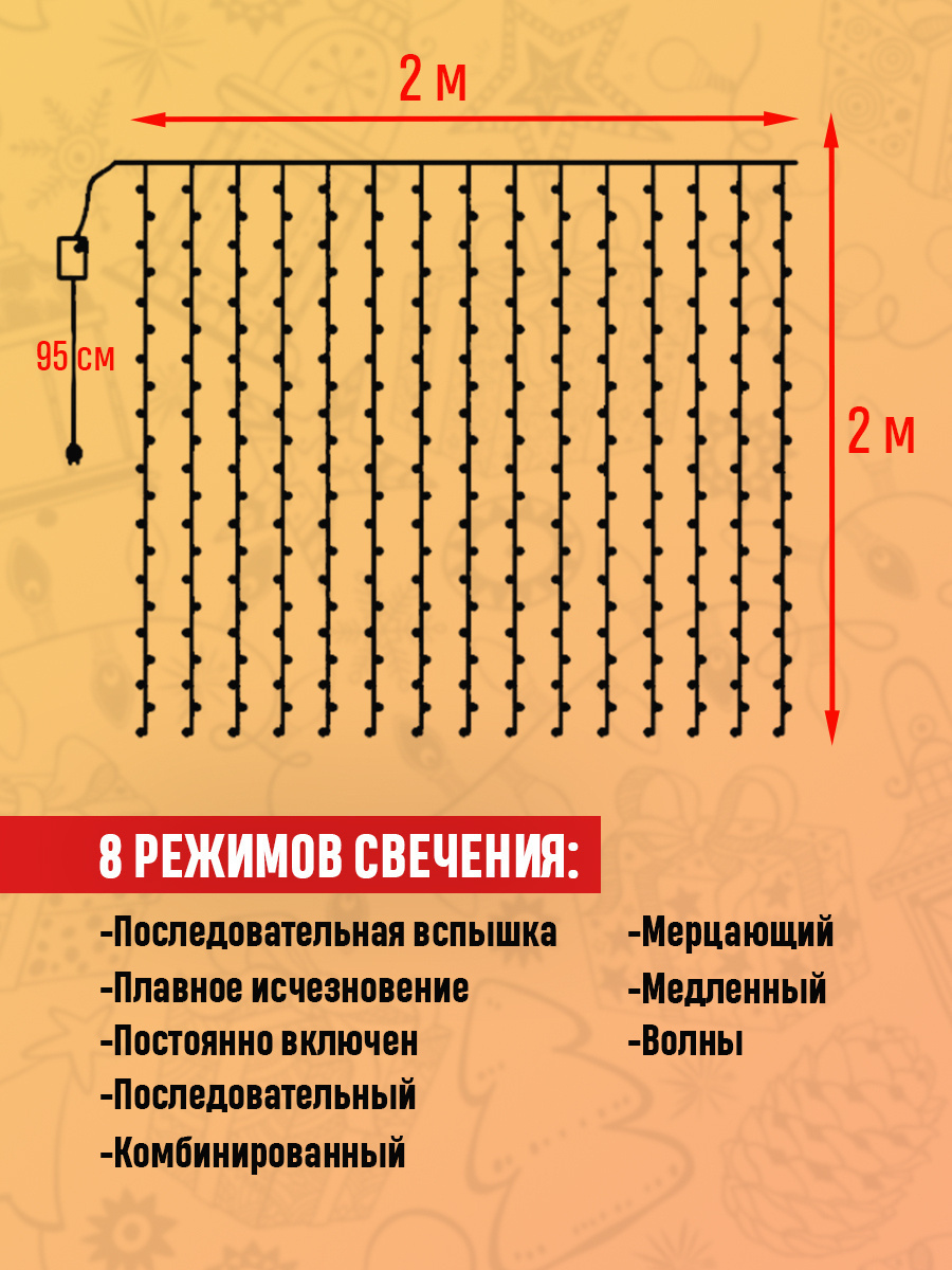 Электрогирлянда интерьерная Занавес GOODLAC Светодиодная, 2 м, питание От сети 220В, 1 шт
