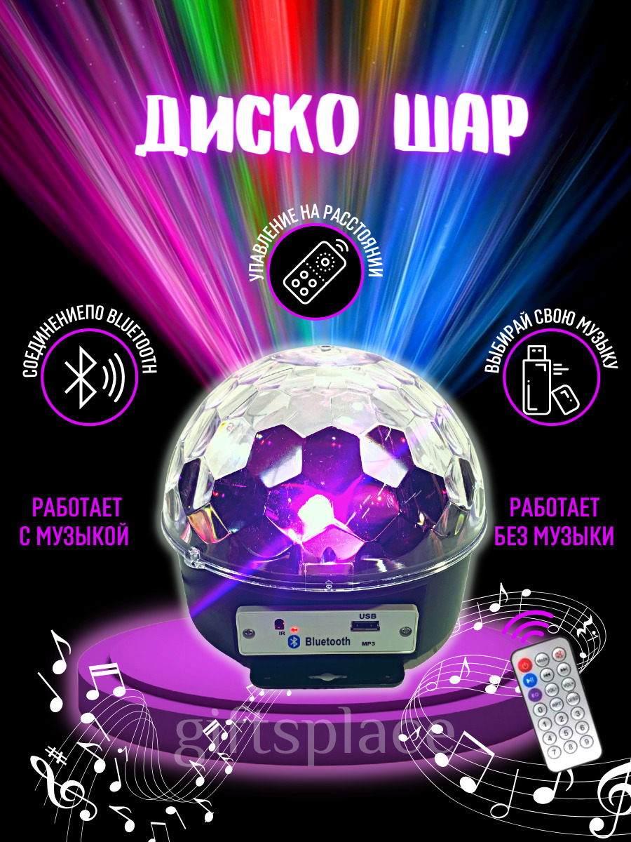 Светильник декоративный, 3D светильник GOODLAC Диско шар светильник, прозрачный