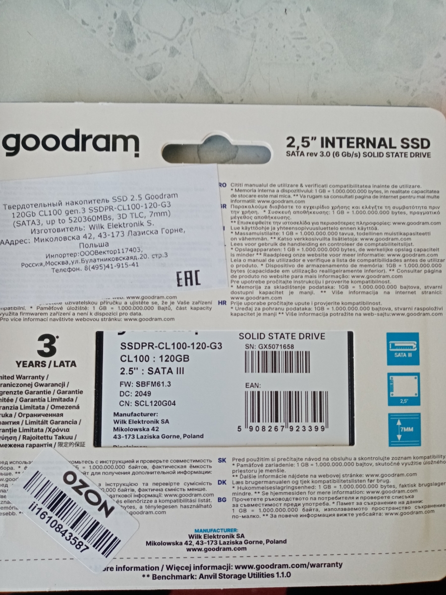 120 ГБ Внутренний SSD диск GoodRam CL100 (SSDPR-CL100-120-G3)