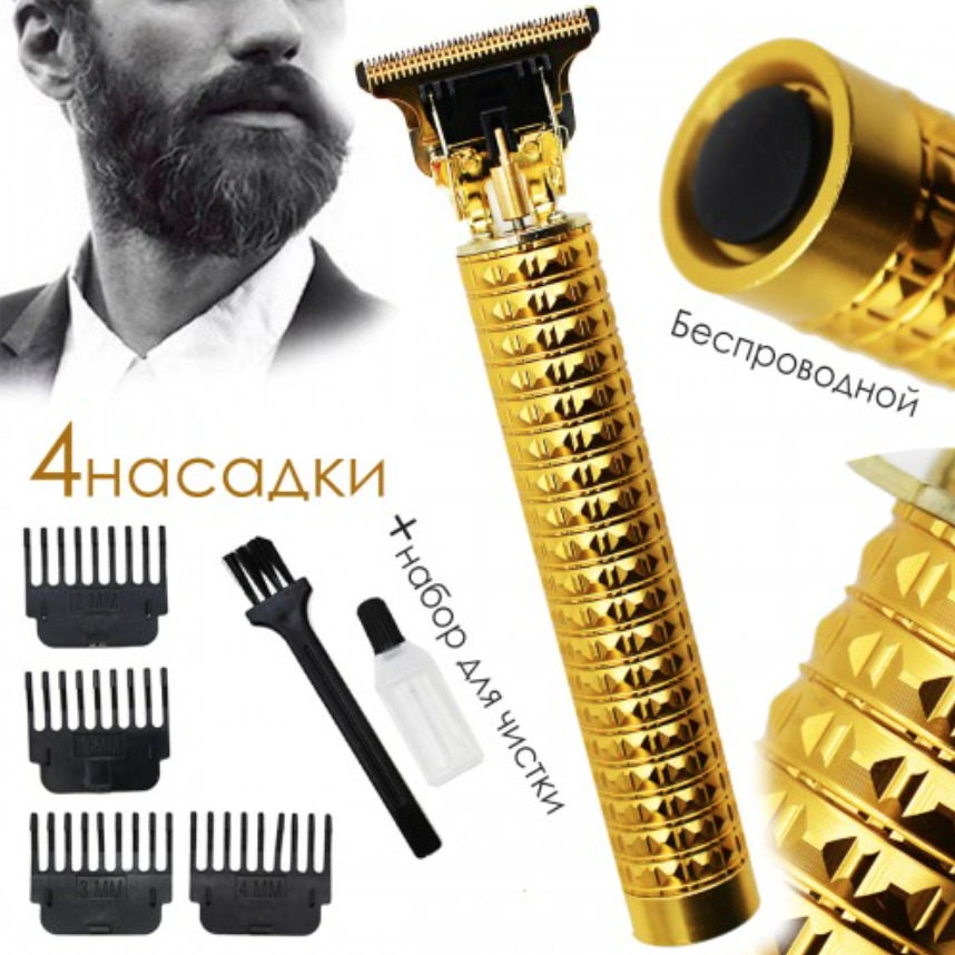 Триммер, Триммер для бороды и усов Goods Hub Gold Barber Trimmer Pro, золотой