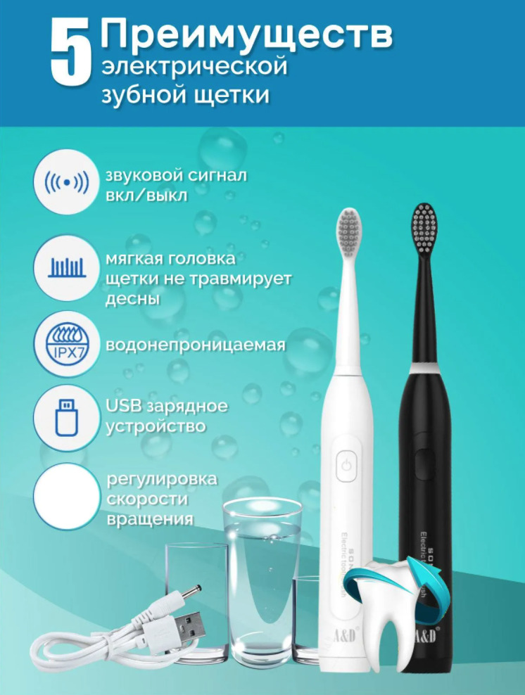 Электрическая зубная щетка Goods Hub SONIC TOOTH BRUSH IPX7 PRO , черный