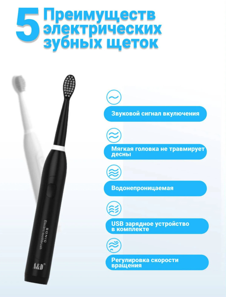 Электрическая зубная щетка Goods Hub SONIC TOOTH BRUSH IPX7 PRO , черный