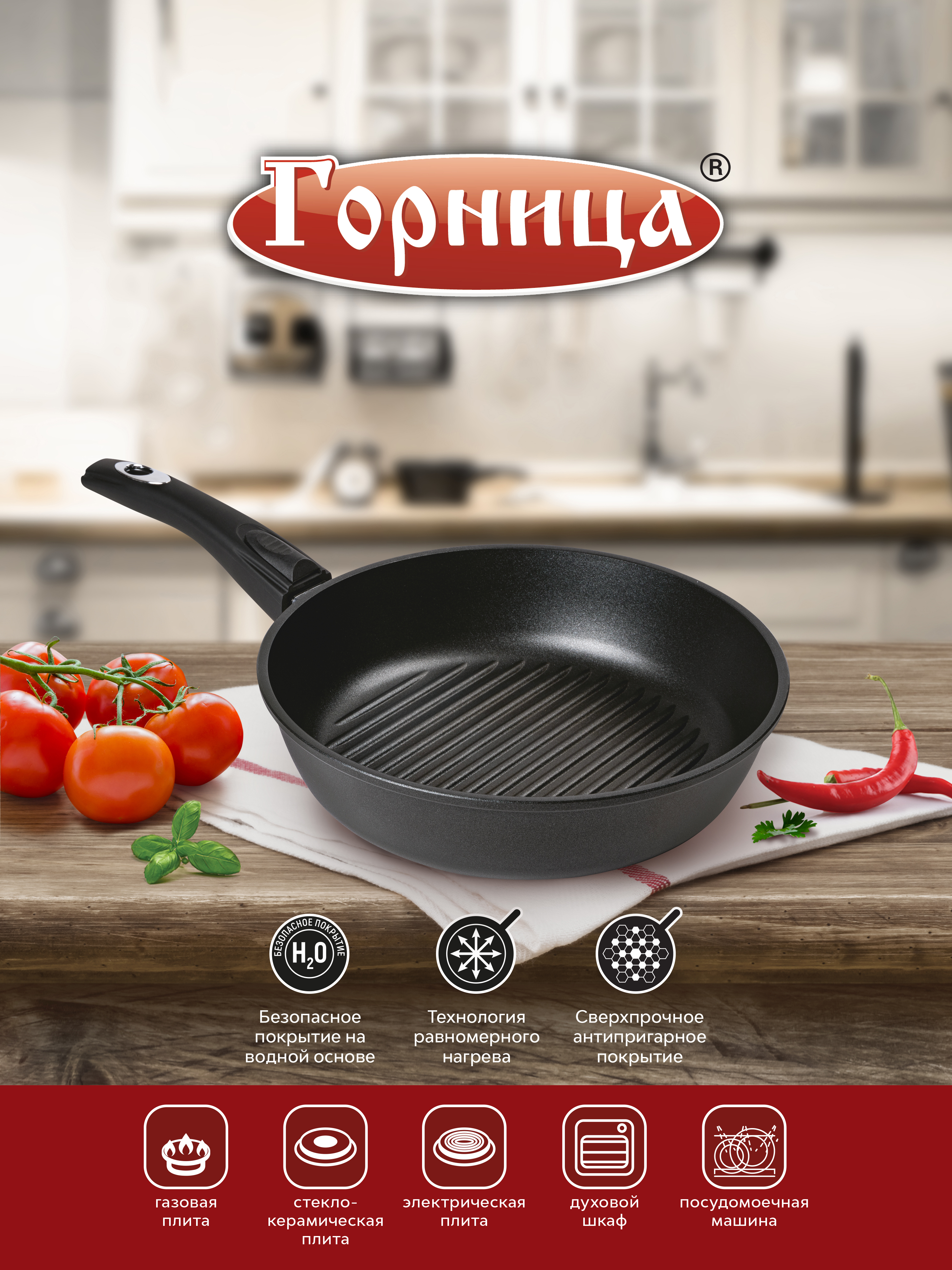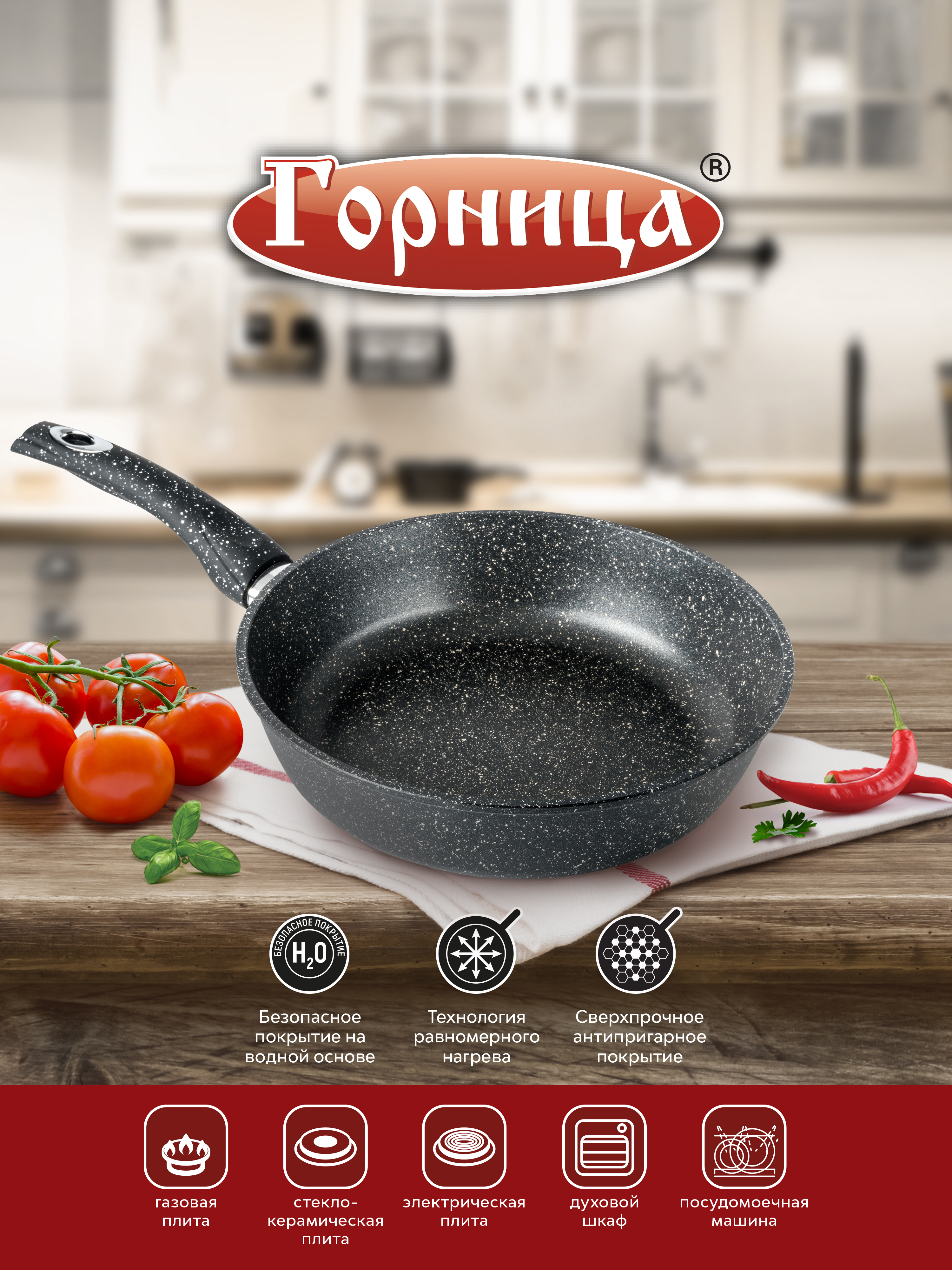 Сковорода Горница 260/70 мм, съемная ручка (софт тач), без крышки, серия "Гранит" с2653аг